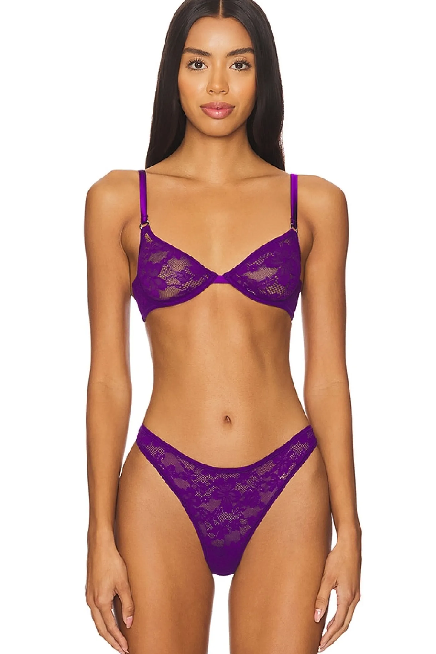 Self: 37% nylon 34% spandex 29% recycled nylon Contrast Fabric: 95% silk 5% spandex.Made in Myanmar.Hand wash.Unpadded underwire cups.Back strap with hook and eye closure.Adjustable shoulder straps.Lace fabric.Item not sold as set