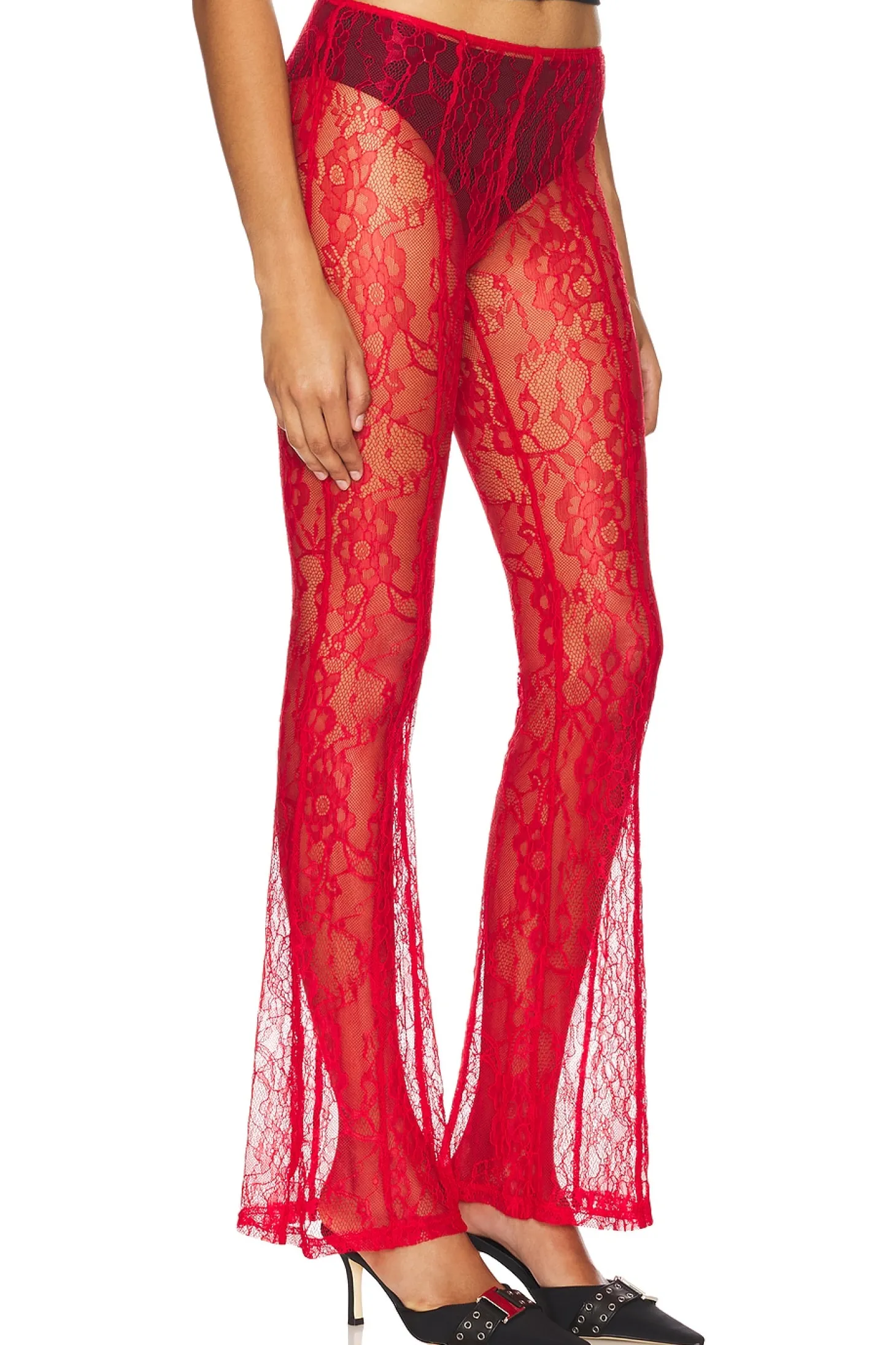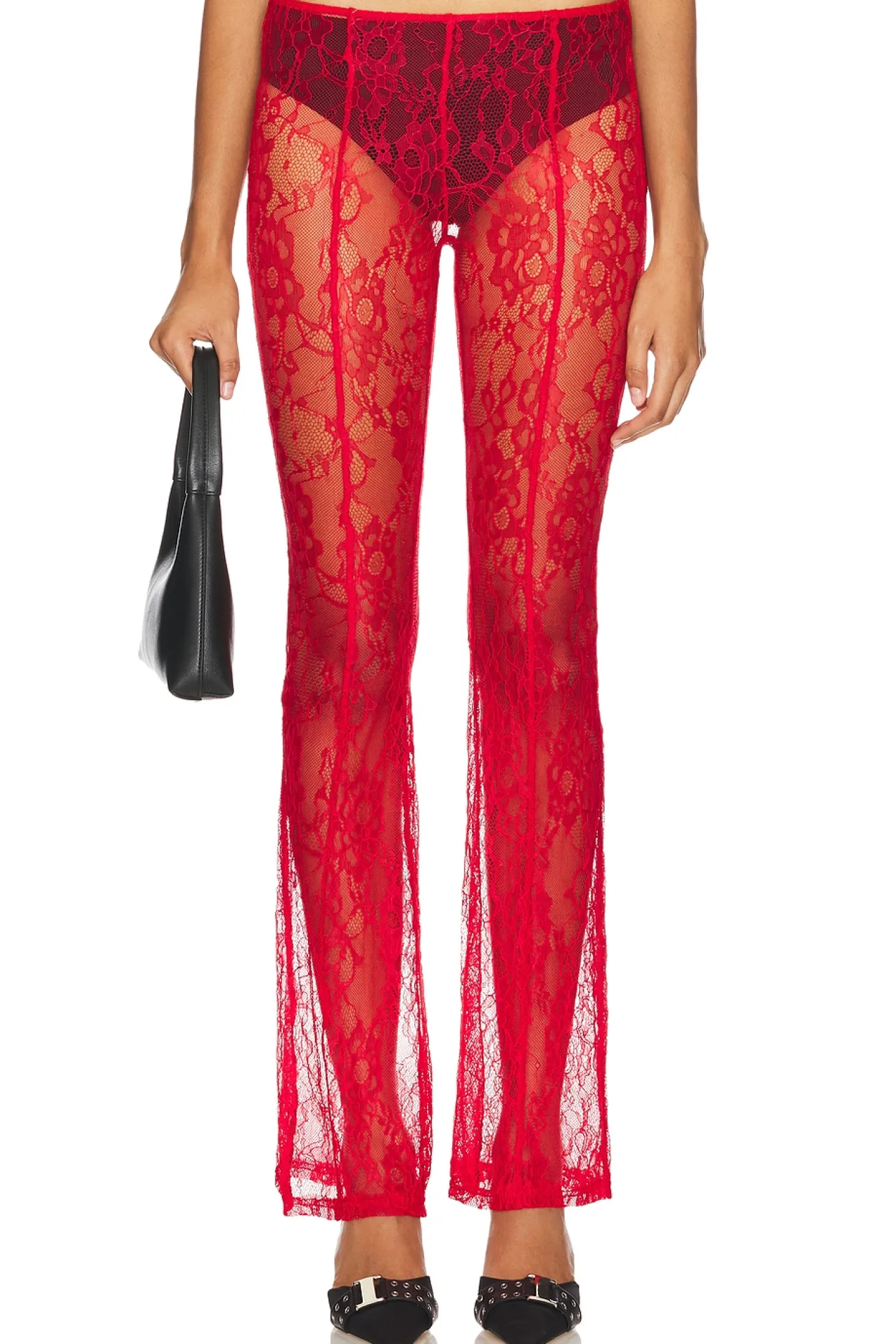90% nylon 10% elastane.Made in China.Hand wash.Pull-on styling.Low-rise fit design.Garment is intentionally sheer, undergarments will show through. Please note undergarment not included.13" at the knee breaks to 20" at the leg opening
