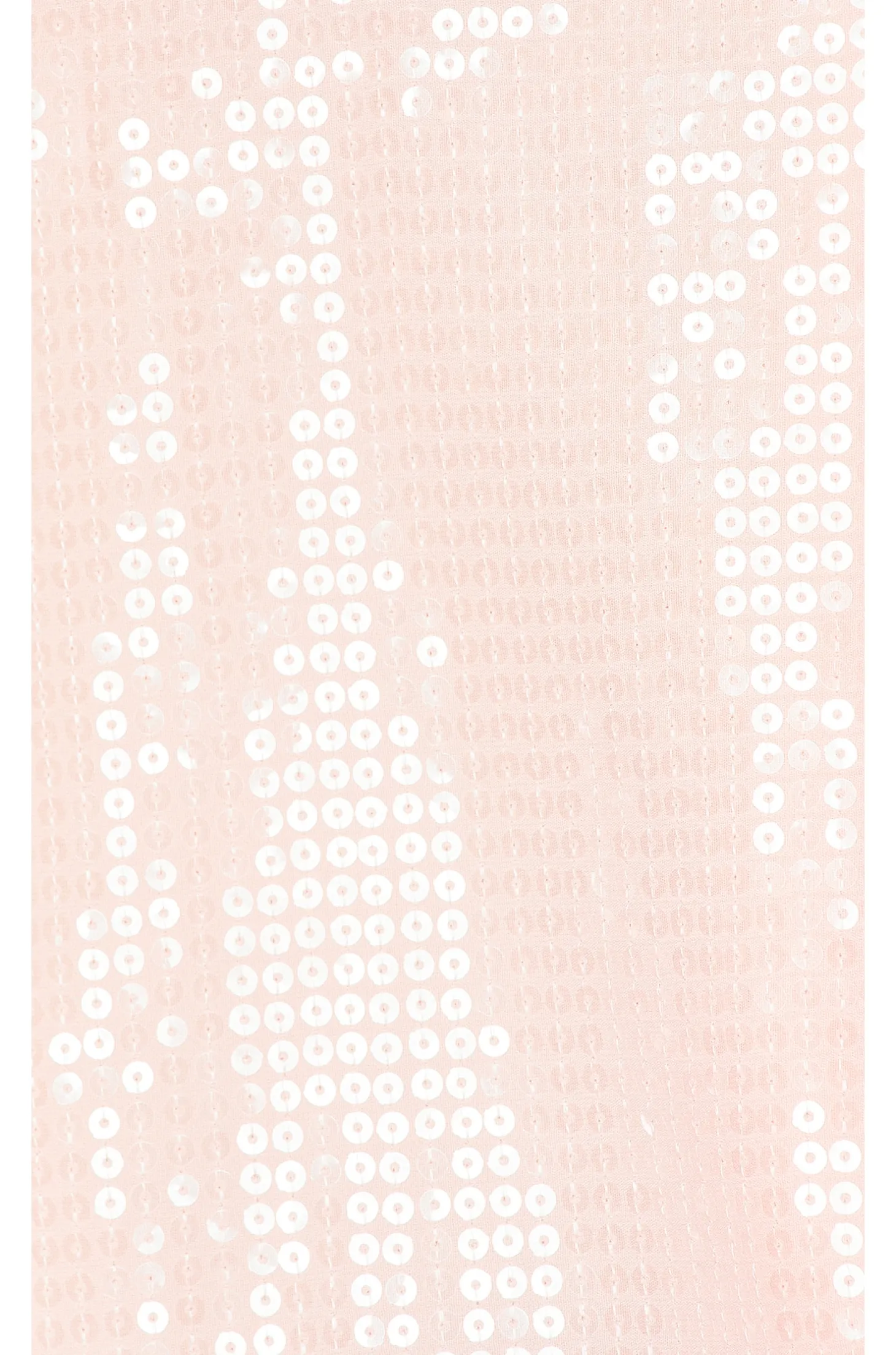 100% polyester.Made in China.Dry clean only.Fully lined.Back tie closure.Waist and back cut-out design.Midweight sequin embellished fabric with side seam slit