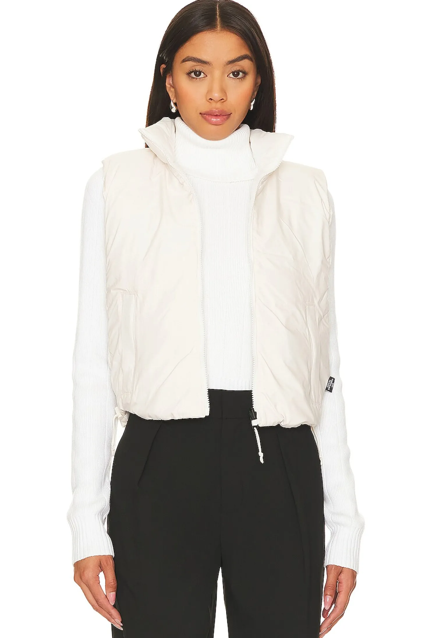 100% polyester.Made in Jordan.Machine wash.Front zipper closure.Interior side seam pockets.Drawcord detail at sides.Stand up collar.Lightweight padded ripstop fabric