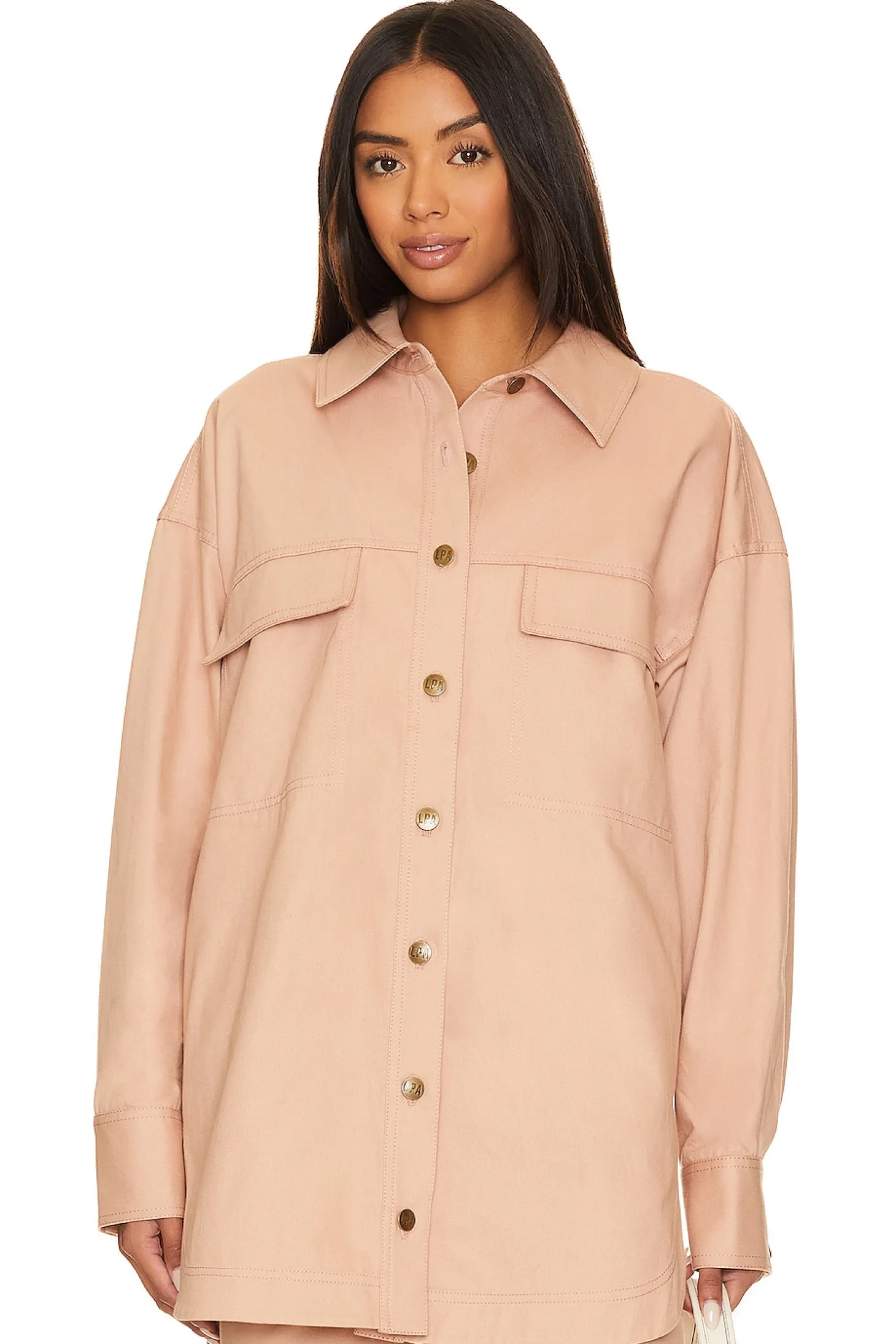 100% cotton.Made in China.Machine wash.Front button closure.Breast flap pockets.LPA patch logo detail at back.Buttoned cuffs.Twill fabric Item not sold as a set