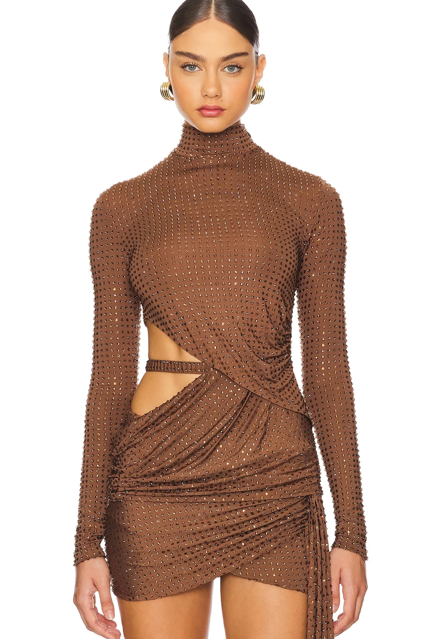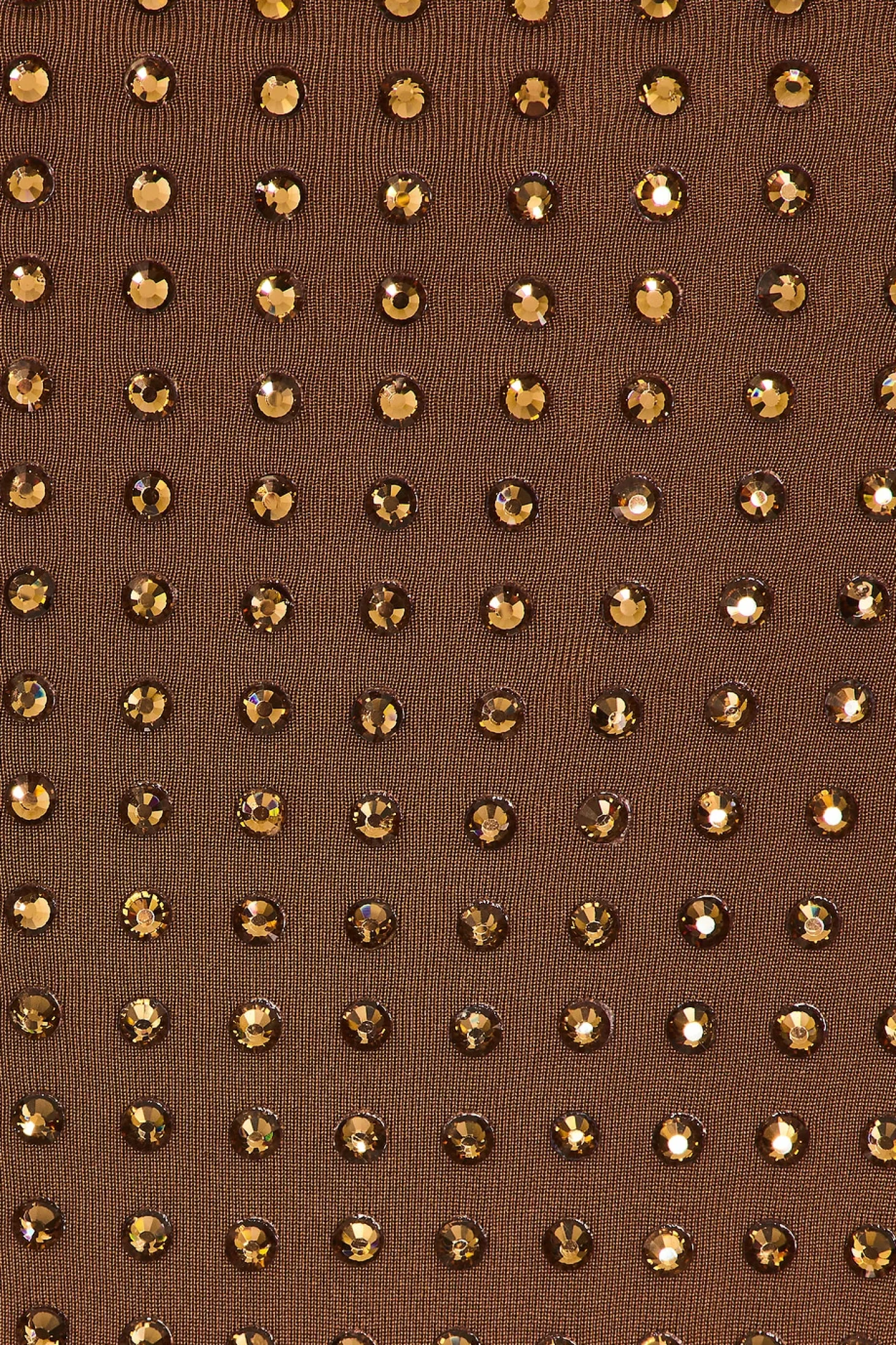 84% polyester 16% elastane.Made in Ukraine.Hand wash.Hidden side zipper closure.Attached elastic waist belt.Midweight stone embellished fabric.Item not sold as set