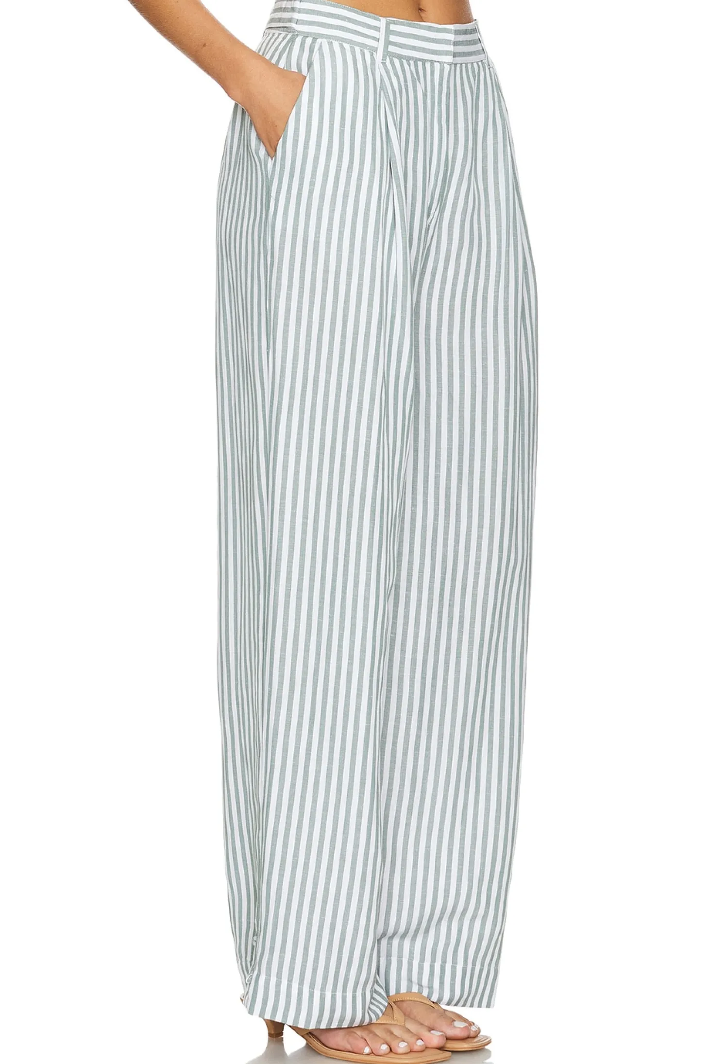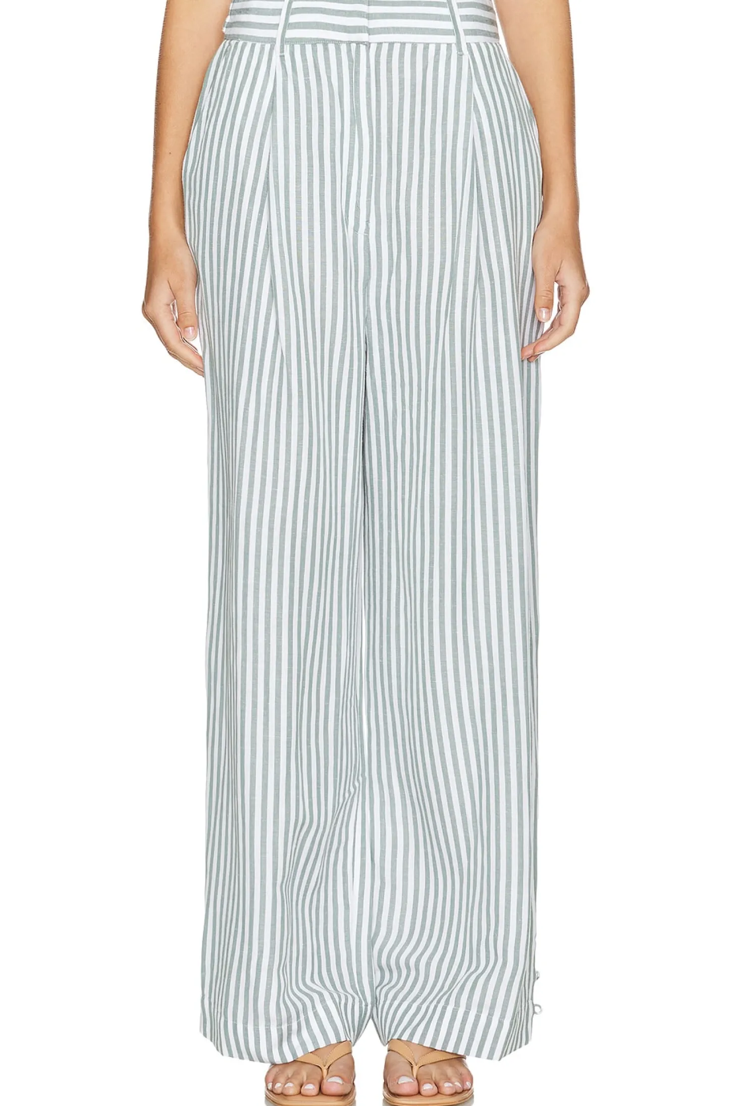 Self: 55% viscose 45% linen Lining: 100% cotton.Made in India.Hand wash.Zip fly hook and bar closure.Adjustable waist feature.Wide leg with adjustable tabs at hem for a narrower fit.24" at the knee and 22" at the leg opening