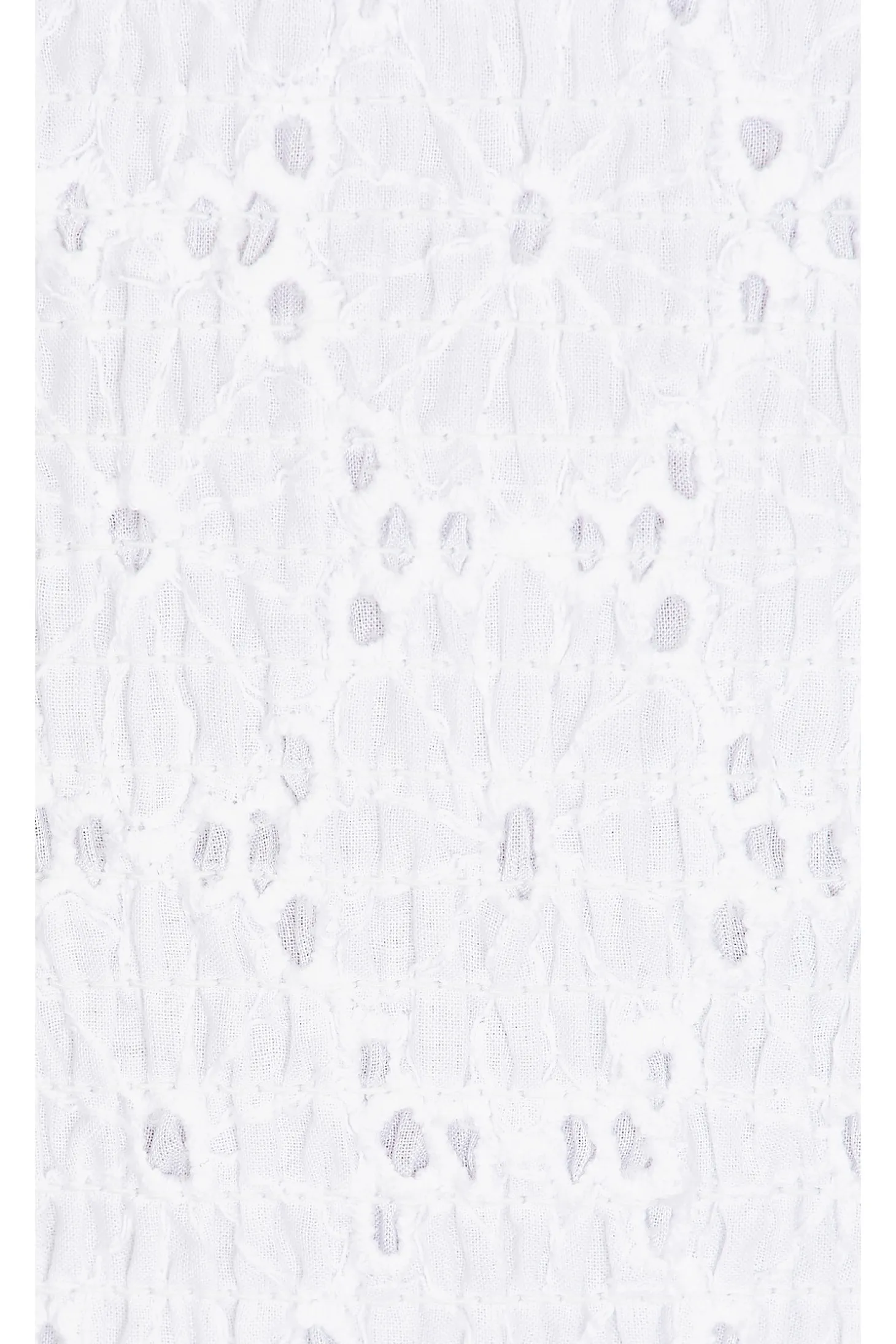 Self: 100% cotton Lining: 100% rayon.Made in China.Hand wash.Smocked fabric.Poplin fabric with eyelet florettes.Item not sold as set