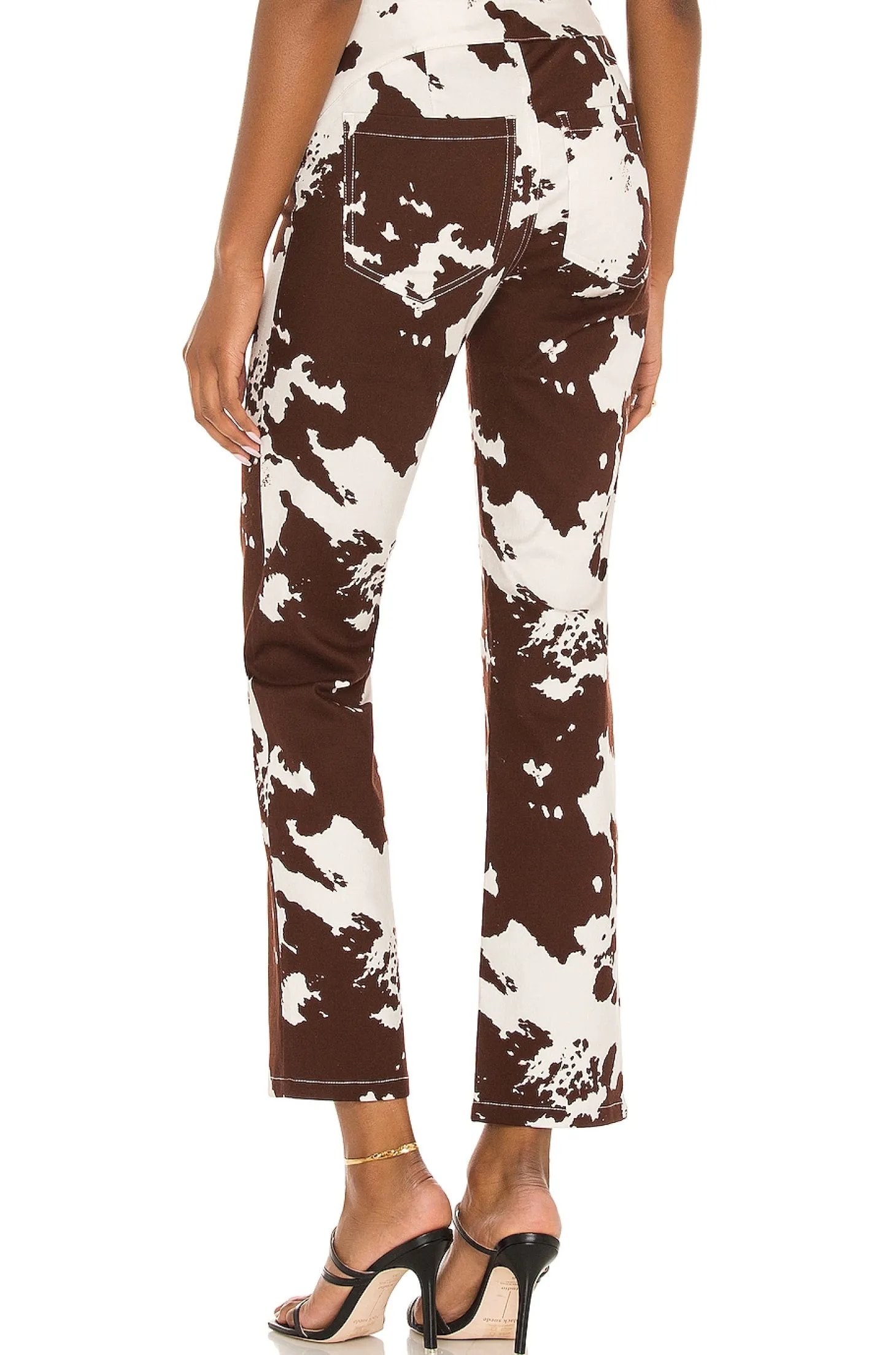 97% cotton 3% spandex.Made in China.Dry clean only.Zip fly with interior button and attached belt buckle closure.Back slip pockets.14.5" at the knee and 14.5" at the leg opening