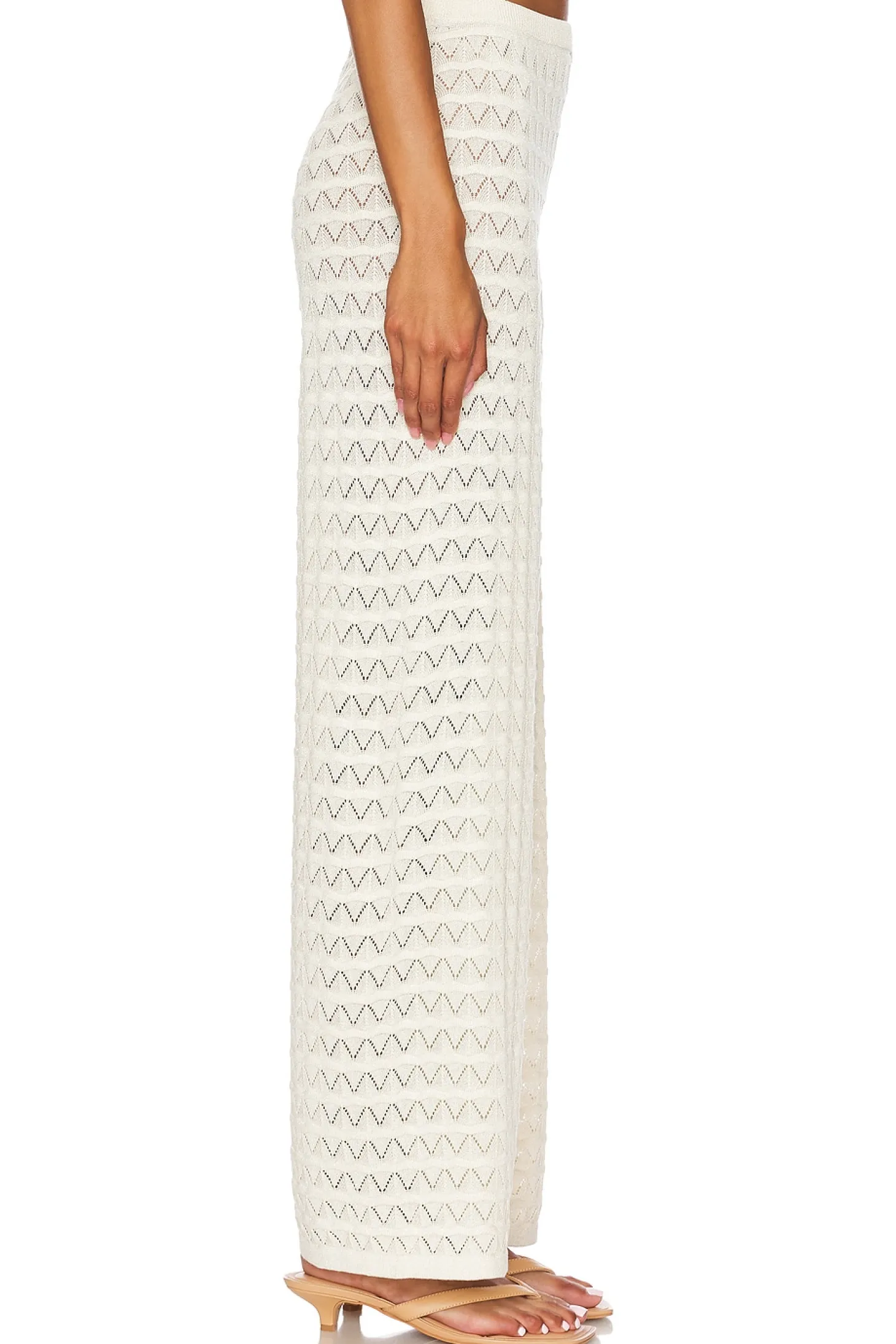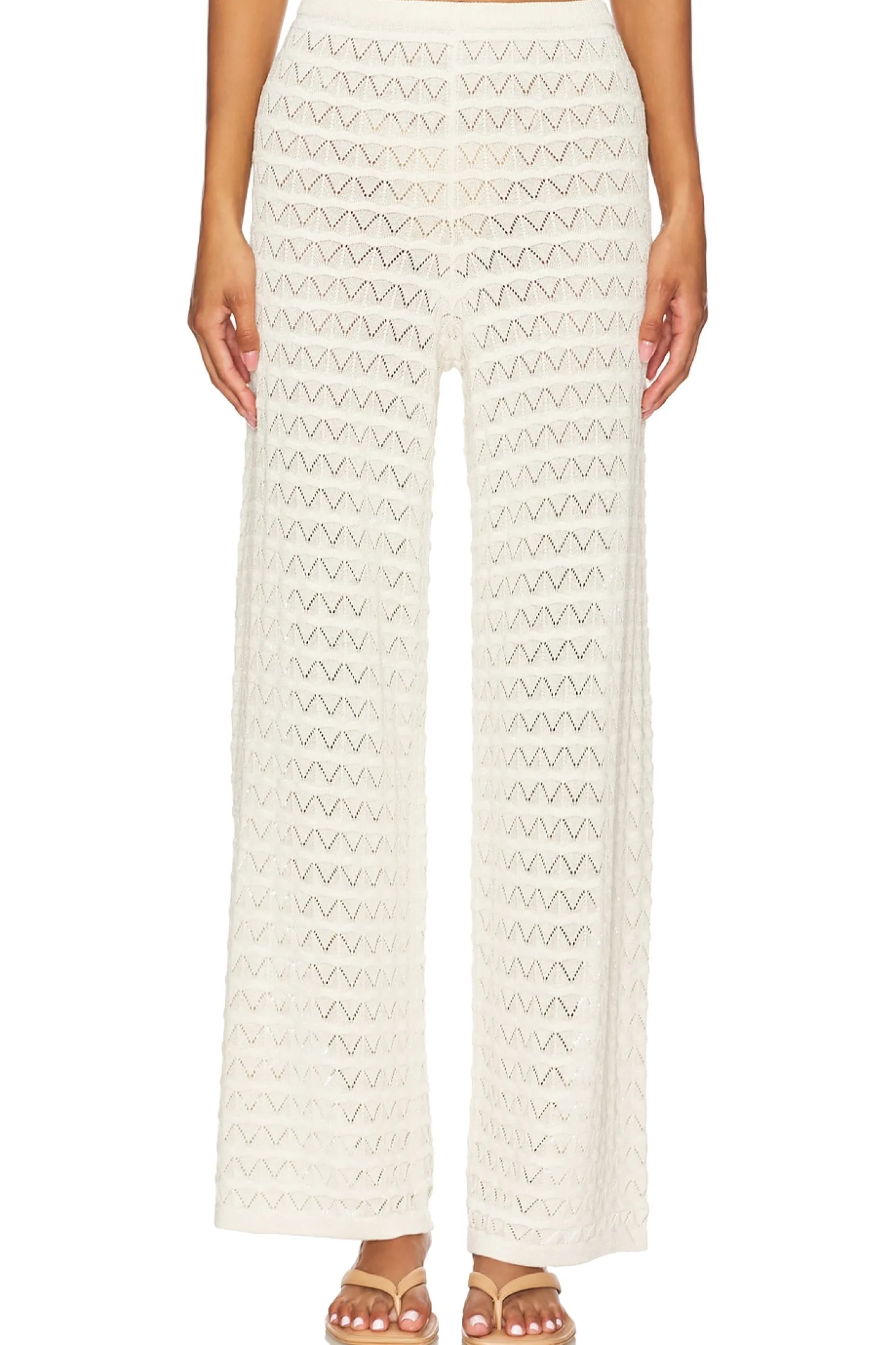 85% viscose 15% nylon.Made in China.Dry clean only.Pull-on styling with elastic waistband.Midweight knit fabric with metallic threading throughout.Item not sold as a set.Garment is intentionally sheer, undergarments will show through. Please note undergarment not included.21" at the knee and 21" at the leg opening
