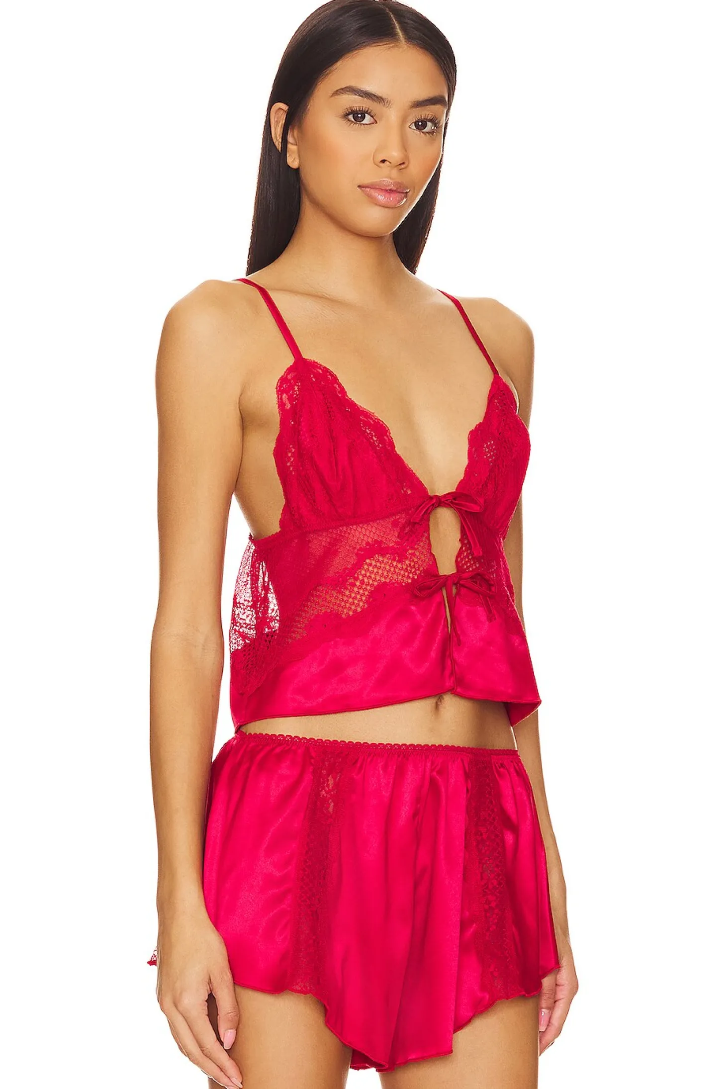93% polyester 7% elastane.Made in China.Hand wash.Dual front tie closure.Adjustable shoulder straps.Sheer lace and satin panels.Item not sold as a set