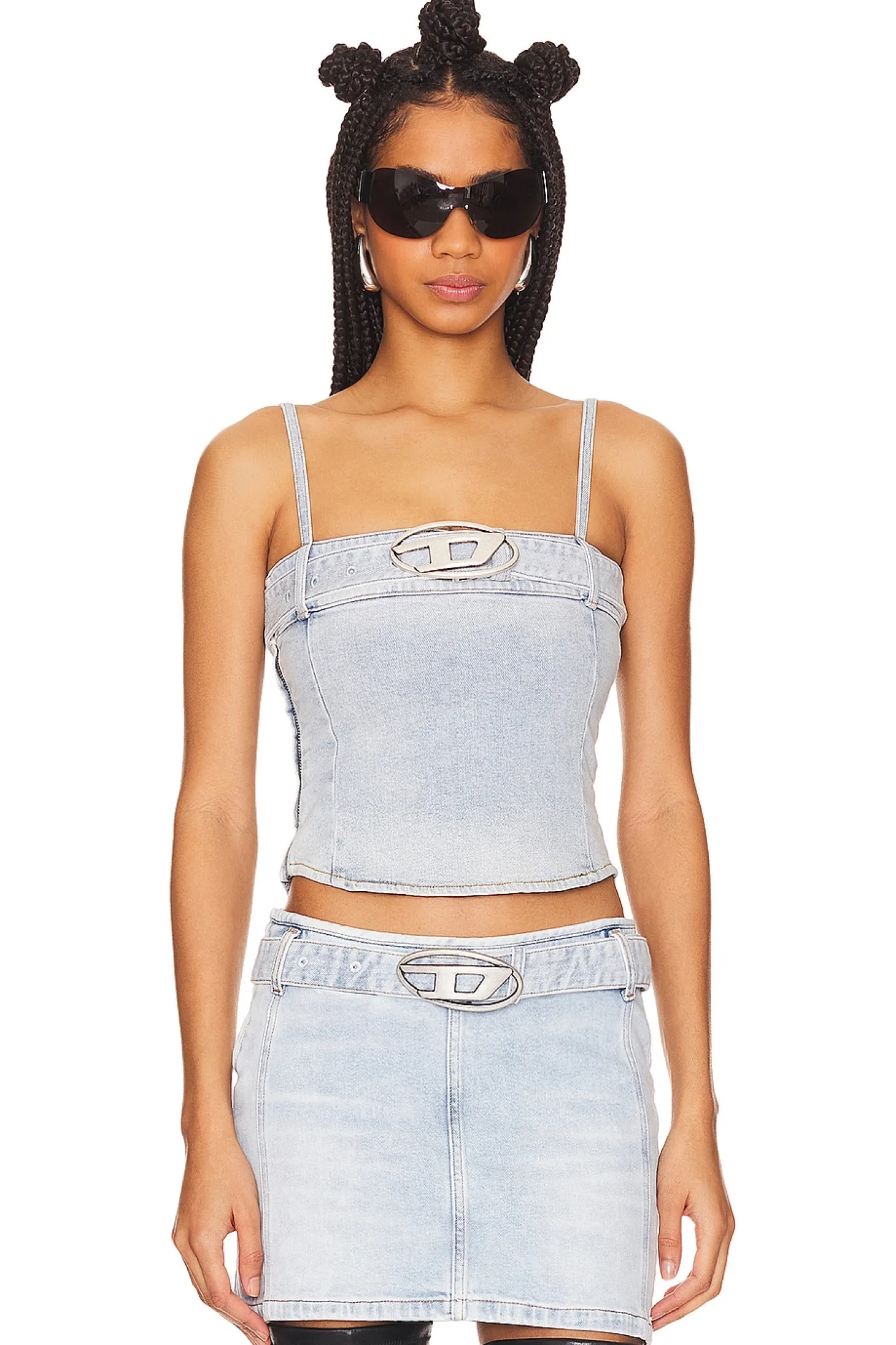 100% cotton.Made in Albania.Machine wash.Removable belt with push pin closure.Silver-tone logo hardware.Item not sold as a set