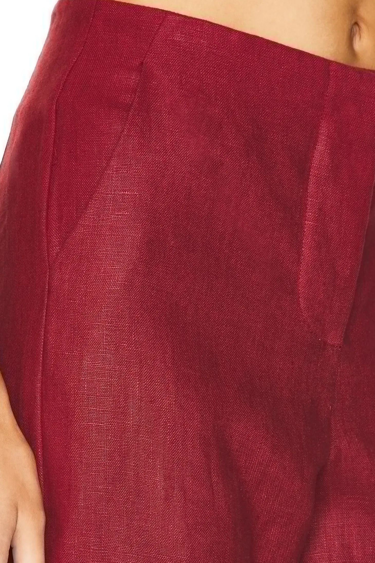 100% linen.Made in Indonesia.Hand wash.Zip fly with hook and bar closure.Slant side pockets.Linen fabric.Item not sold as set.21" at the knee and 21" at the leg opening