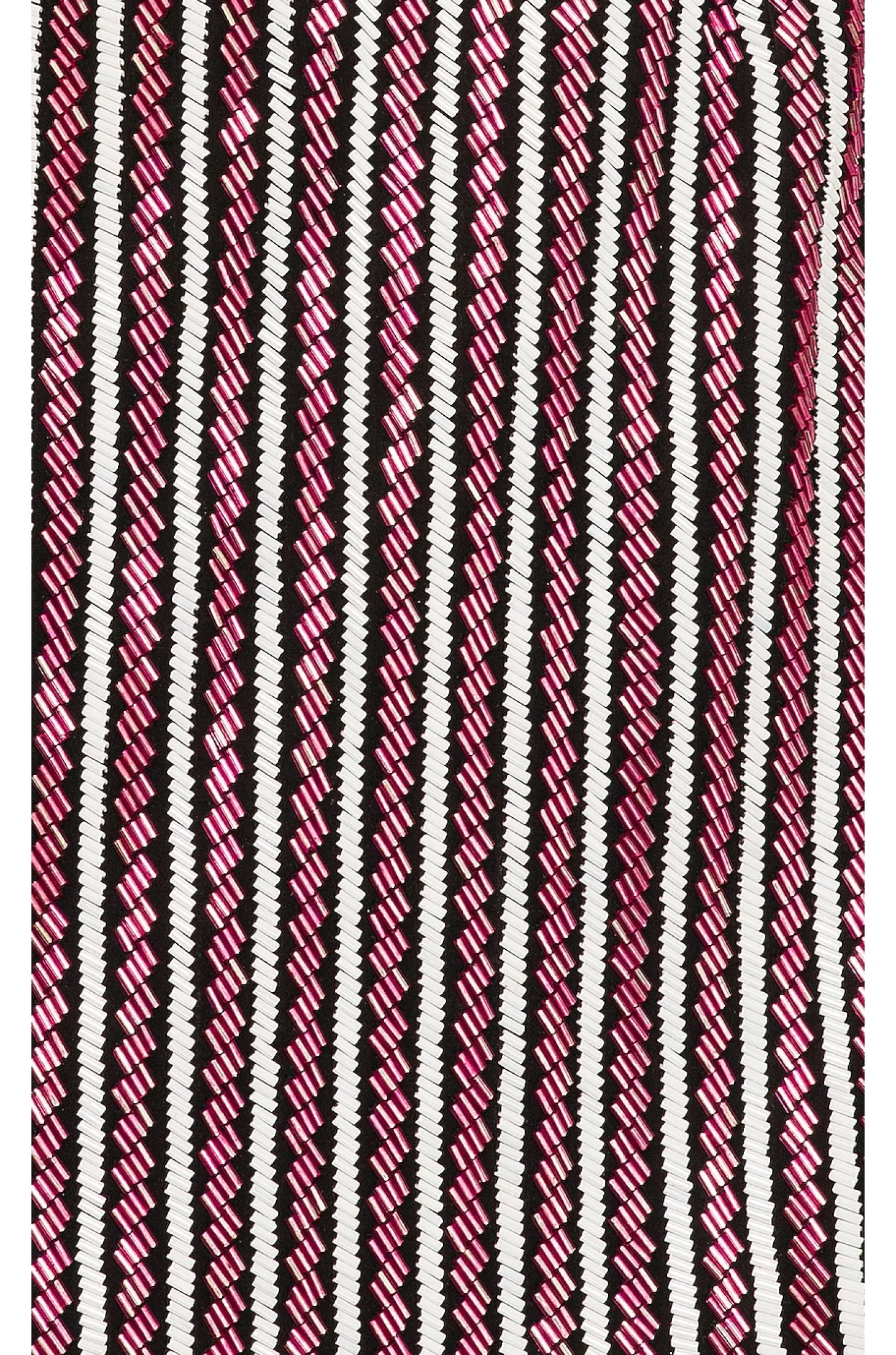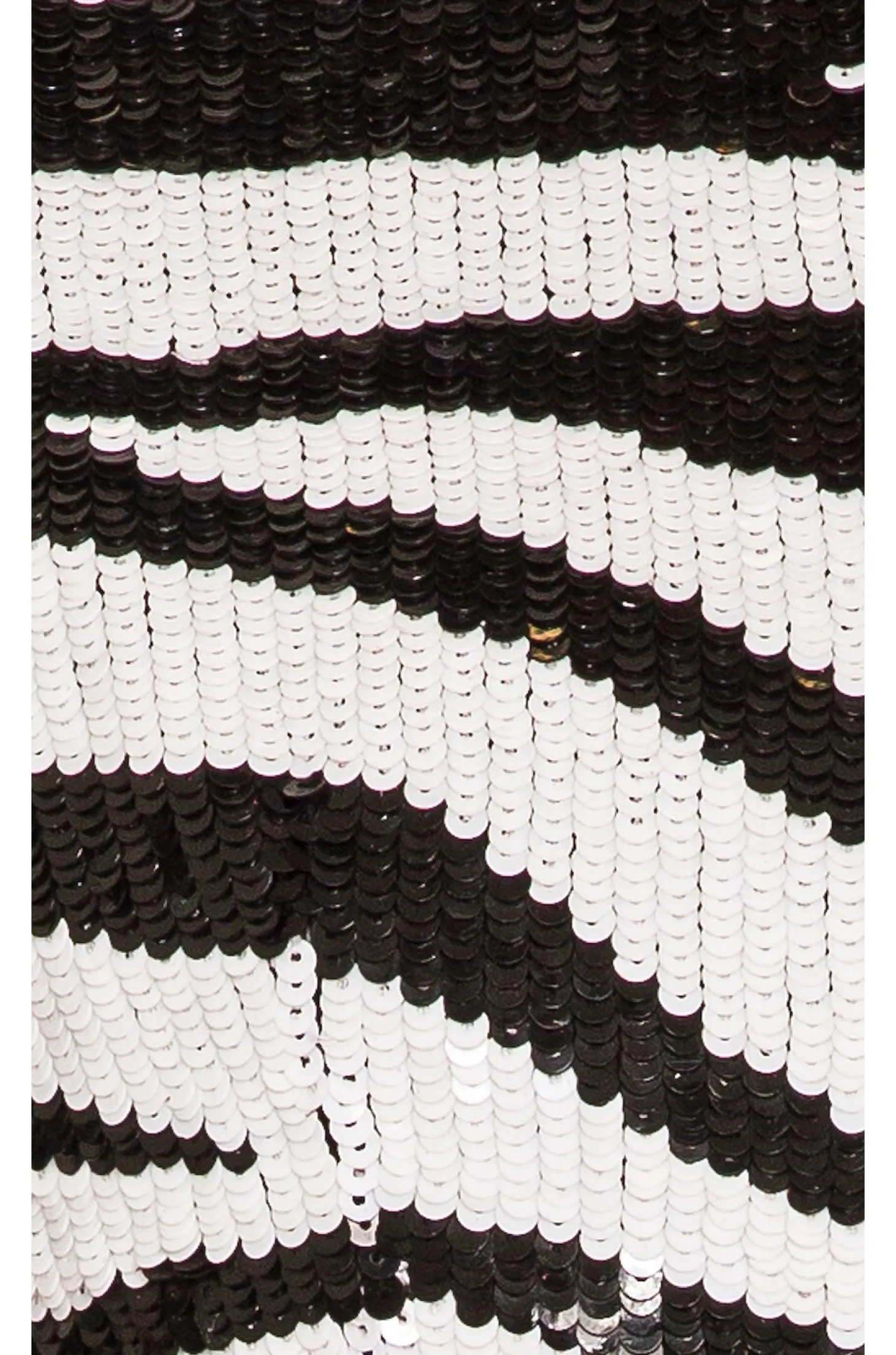Self: 100% poly Lining: 95% poly 5% lycra.Made in India.Dry clean only.Fully lined.Hidden side zip closure.Padded shoulder and adjustable shoulder strap.Allover sequin and bead embellishment