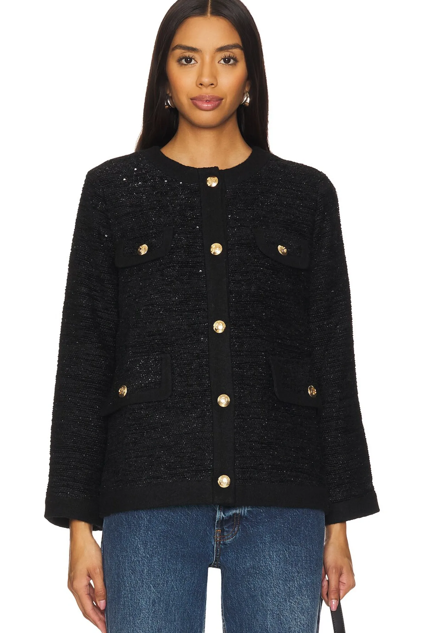 35% acrylic 33% polyester 17% polyamide 12% wool 3% other fibers.Made in Portugal.Dry clean only.Front gold-tone button closure.Front button and breast pockets.Midweight tweed fabric