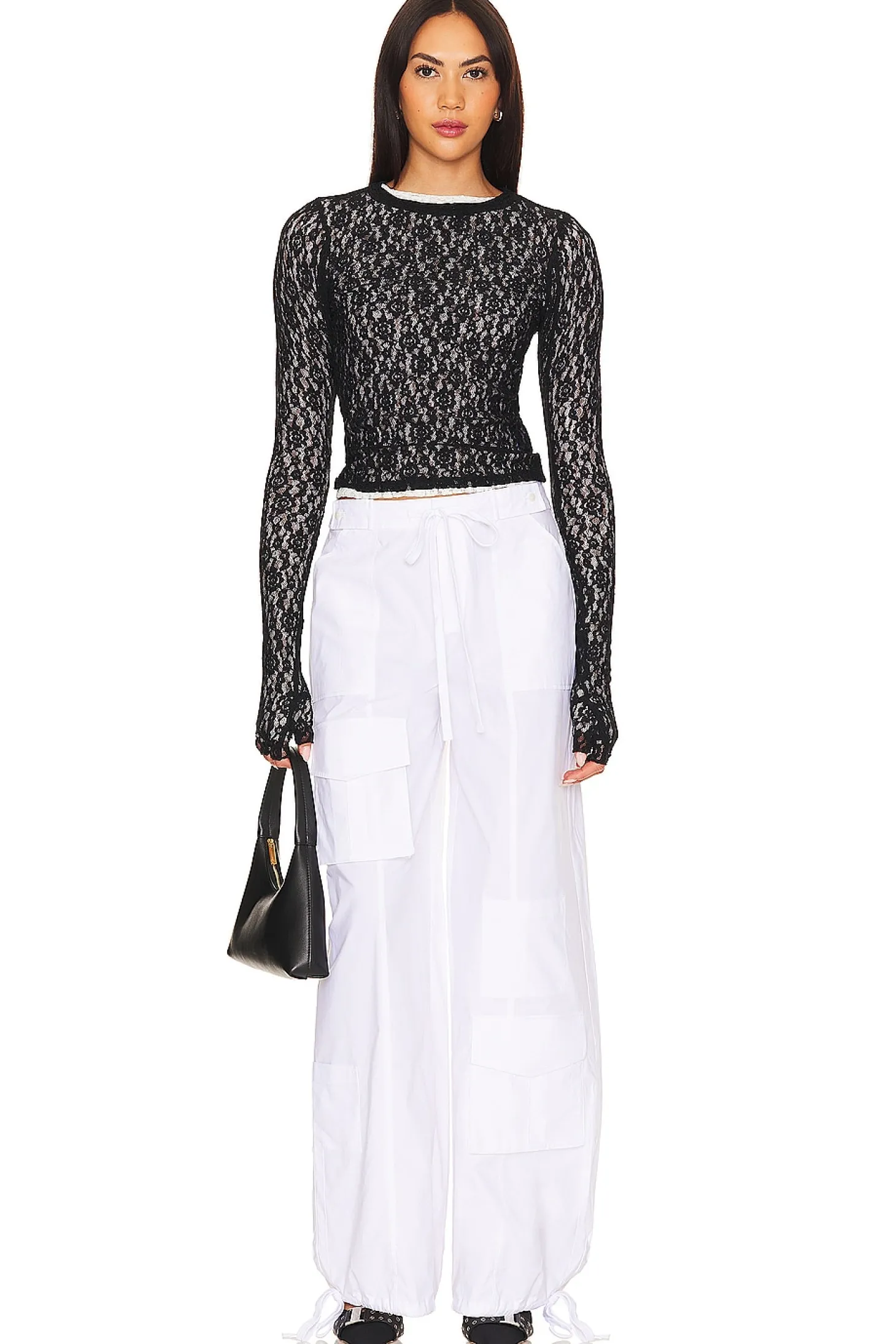 Enhance your casual style with the Lover and Friends Maci Cargo Pant in Bright White for those laid-back yet stylish evenings. These cargo pants feature a comfortable drawstring closure and are crafted from poplin fabric, offering a breezy and stylish option for your night out. Versatile and easy to pair with heels or sneakers, these pants will ensure you to stay on-trend while enjoying a relaxed and fashionable look..98% cotton 2% elastane.Made in China.Dry clean only.Zip fly with hook and bar closure.Drawstring detail at waist 4-pocket design.Cargo pockets Lightweight poplin fabric.23" at the knee and 23" at the leg opening