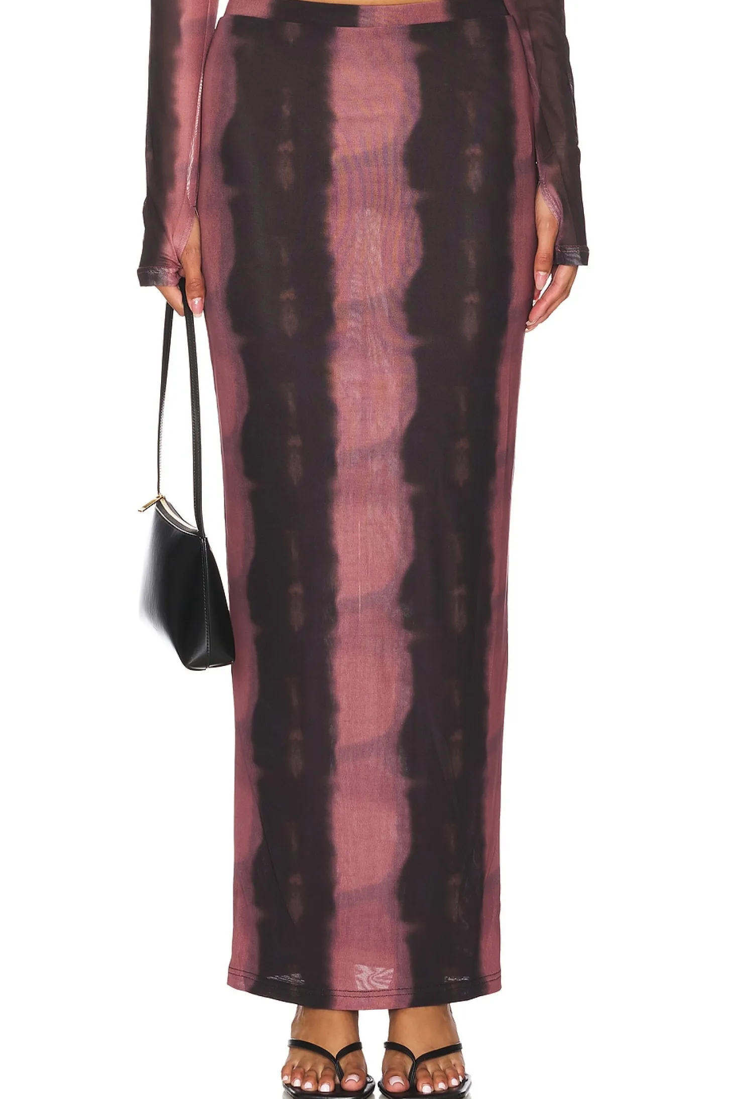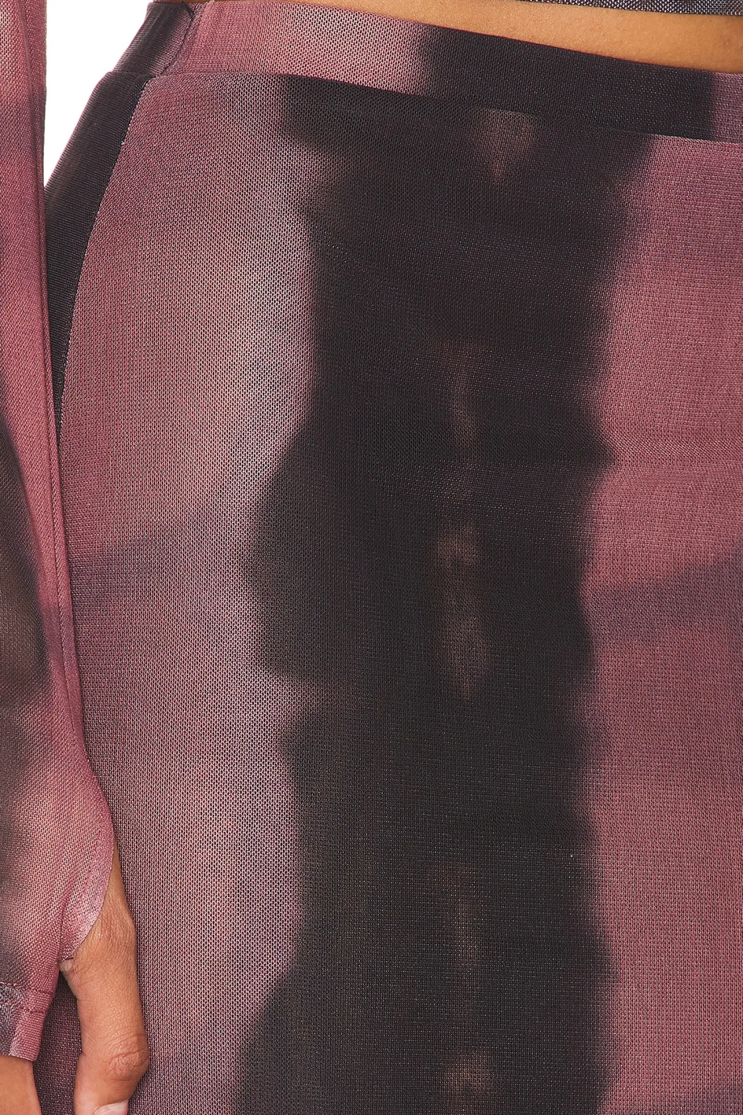 Self: 95% polyester 5% elastane Lining: 95% polyester 5% elastane.Made in China.Machine wash.Fully lined.Pull-on styling with elastic waistband.Mesh fabric with back vent.Item not sold as set.Skirt measures approx 40" in length