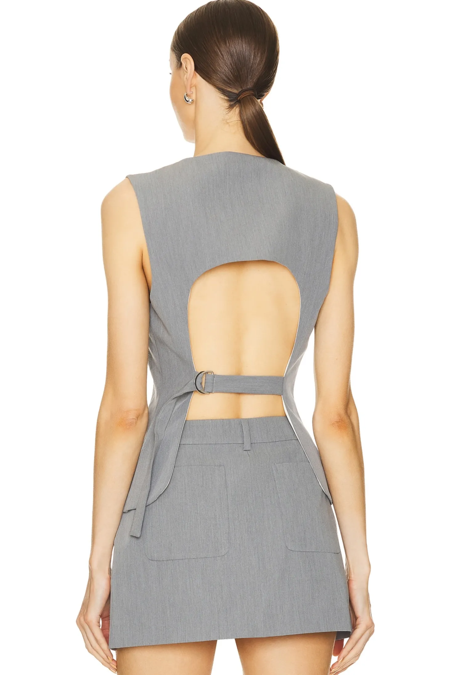 Self: 76% polyester 18% rayon 6% spandex Lining: 100% recycled polyester.Made in China.Hand wash.Dual front button closure.Side tabs.Back strap detail.Twill fabric.Item not sold as set