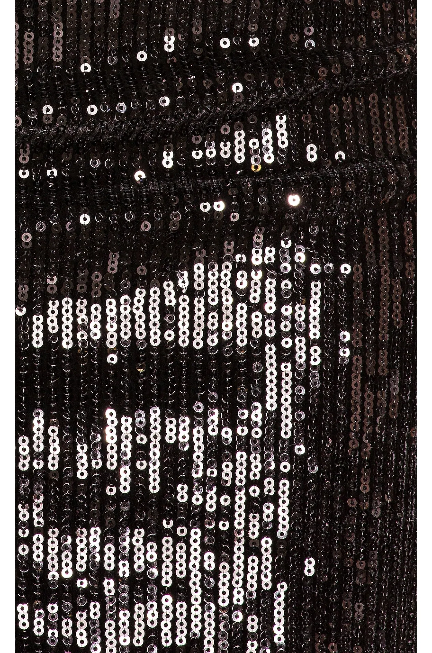 Self: 95% poly 5% spandex ground with 100% PET sequins Lining 1: 97% cotton 3% spandex Lining 2: 90% poly 10% spandex.Made in China.Hand wash.Fully lined.Hidden side zipper closure.Boned corset underlay with underwire cups and sheer mesh accent fabric.Completely embellished with sparkling black sequins Asymmetric hem.Neckline to hem measures approx 25" in length
