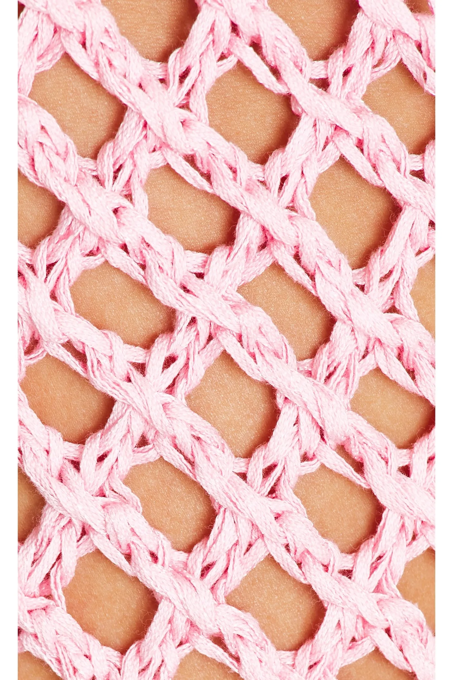 77% cotton 23% polyester.Made in China.Hand wash.Lightweight open crochet fabric.Item not sold as a set