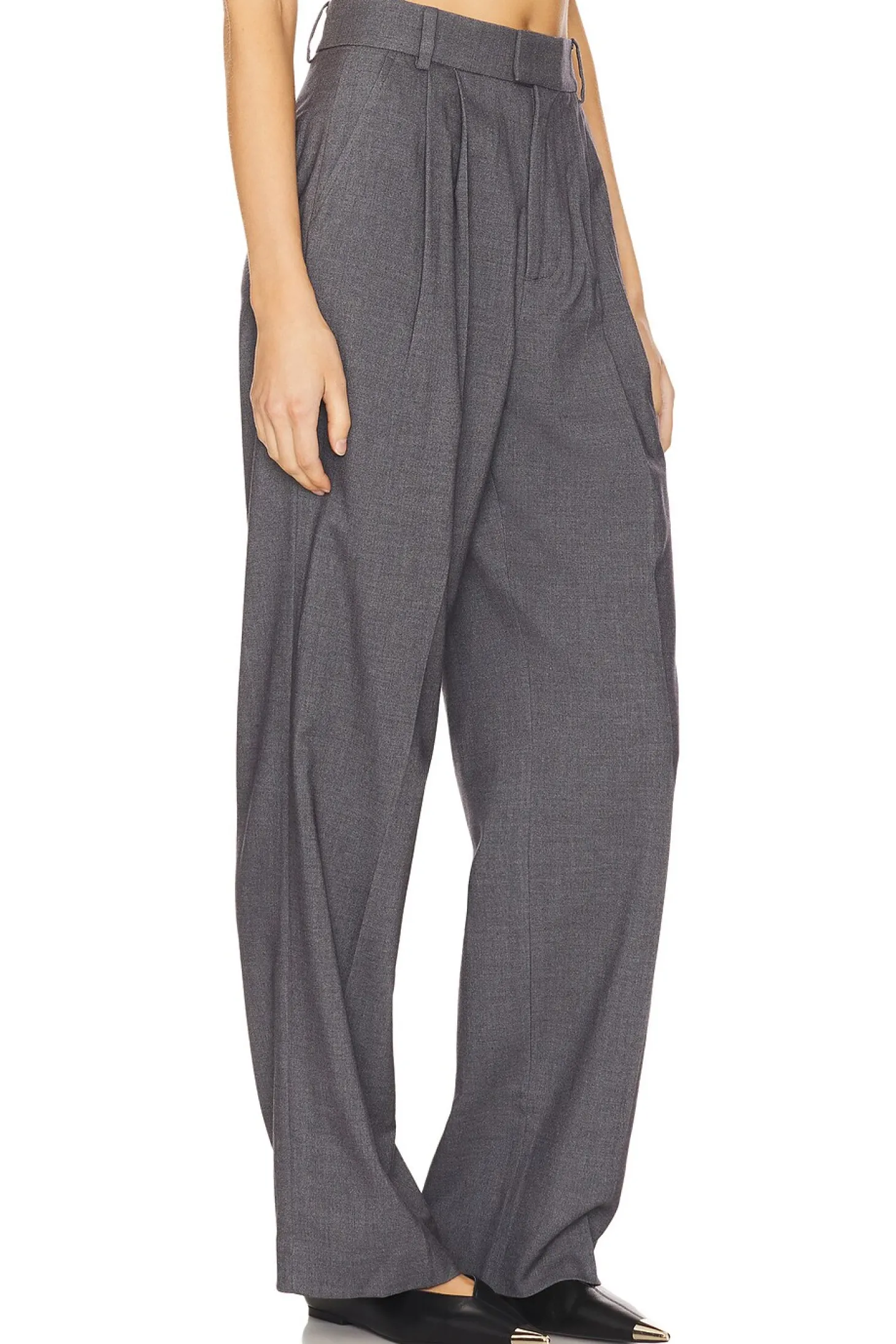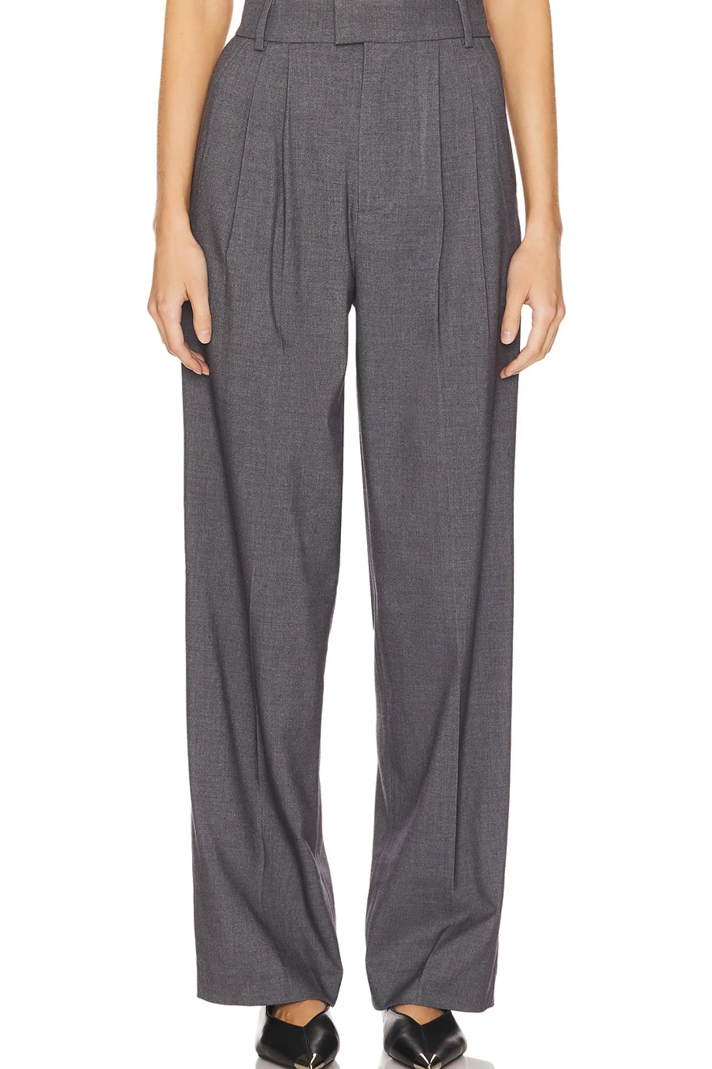 Self: 54% polyester 24% viscose 20% wool 2% spandex Lining: 100% polyester.Made in China.Machine wash.Zip fly with dual hook and bar closure.4-pocket styling.Suiting fabric with front pintuck styling.21" at the knee narrows to 19" at the leg opening
