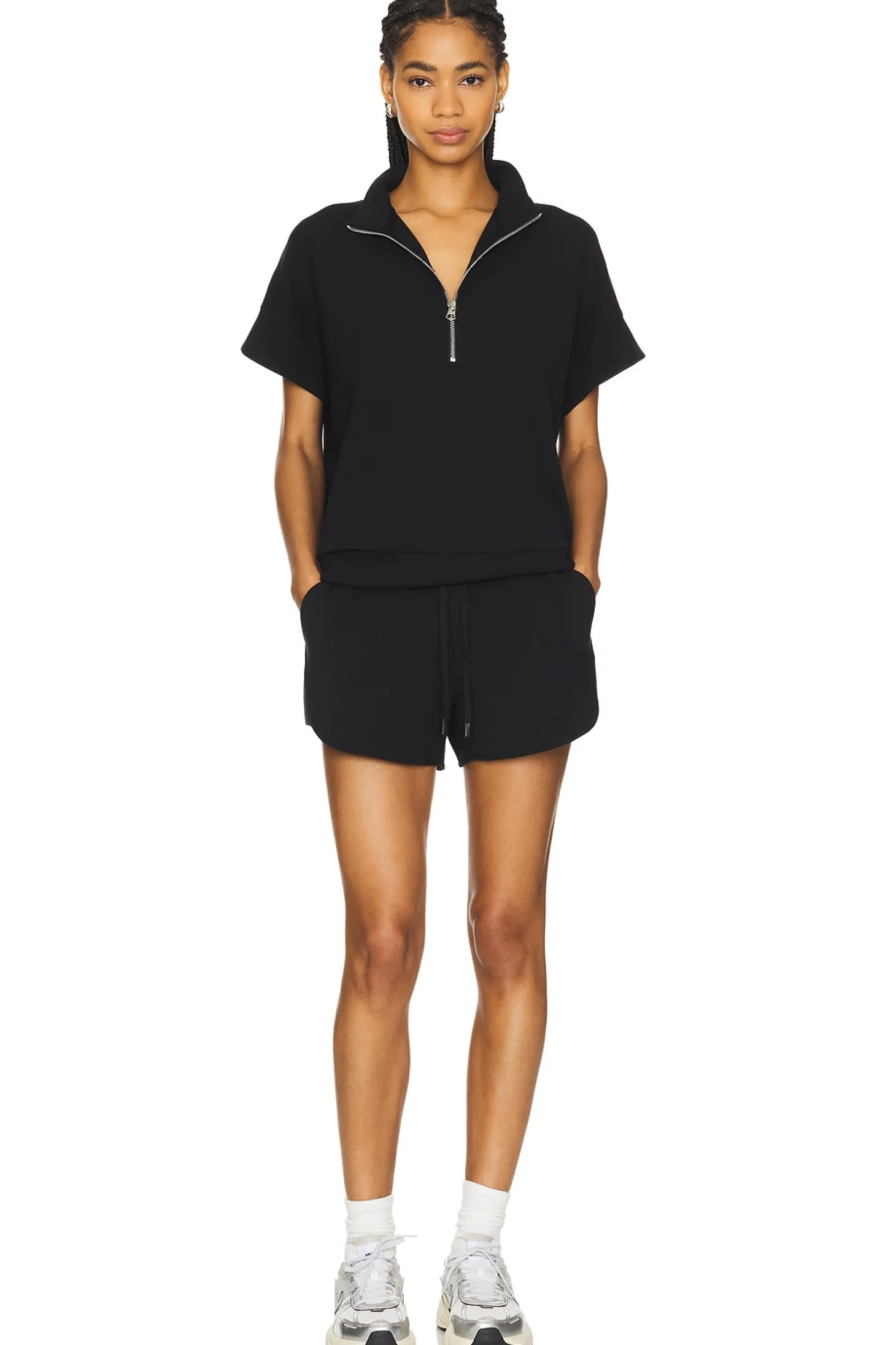 72% viscose 23% polyester 5% elastane.Made in China.Machine wash.Elastic drawstring waistband.Side slant pockets.Jersey fabric.Item not sold as a set.Shorts measure approx 10.5" in length