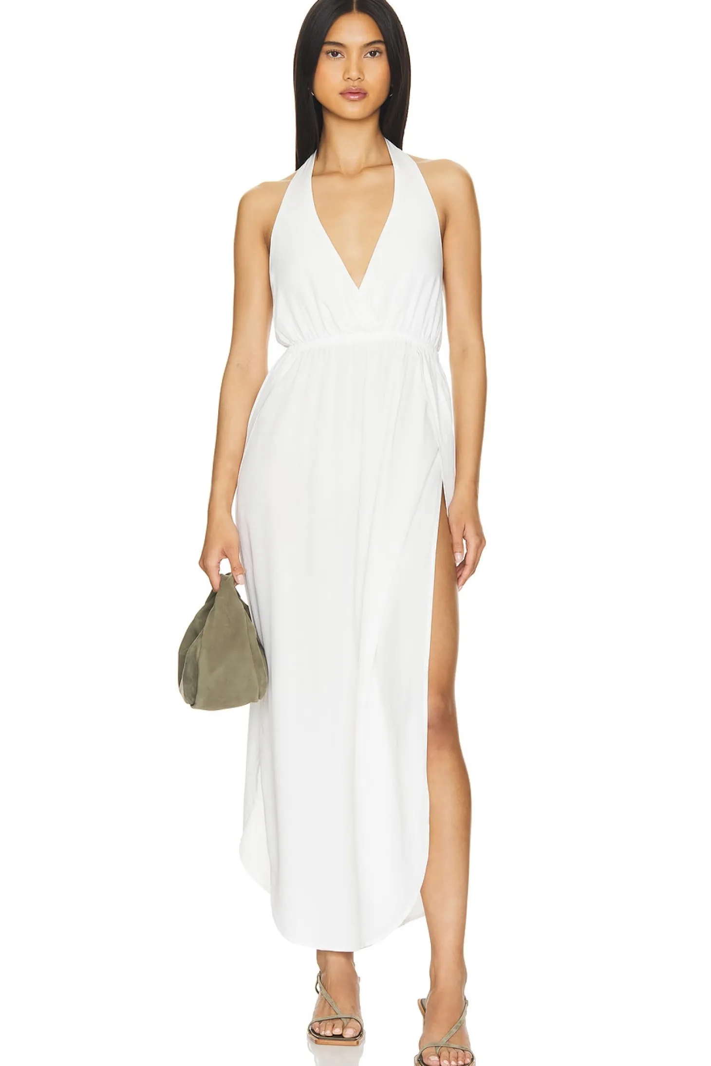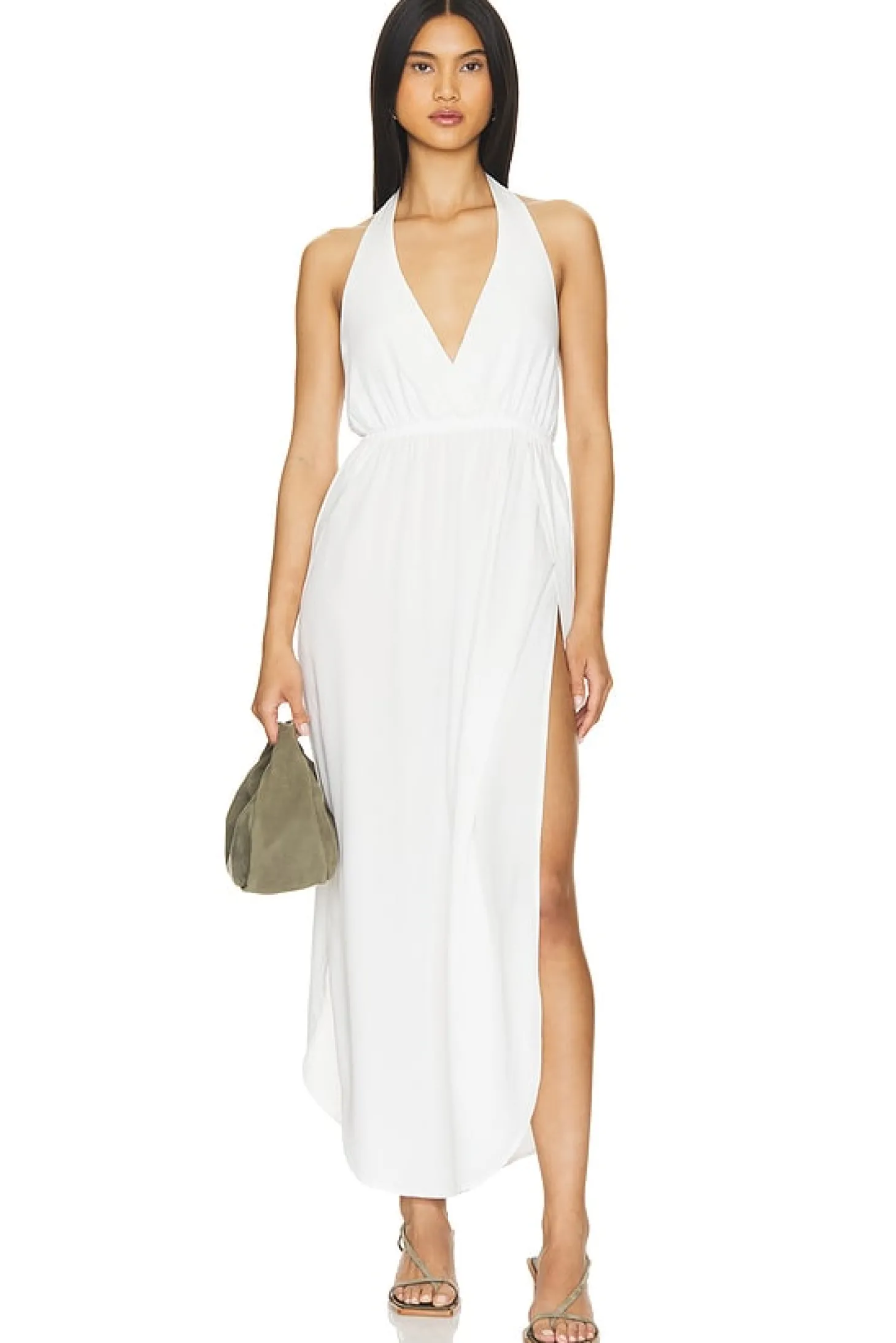 Voile blend.Imported.Machine wash recommended.Unlined.Halterneck styling with tie closure.Side seam slits