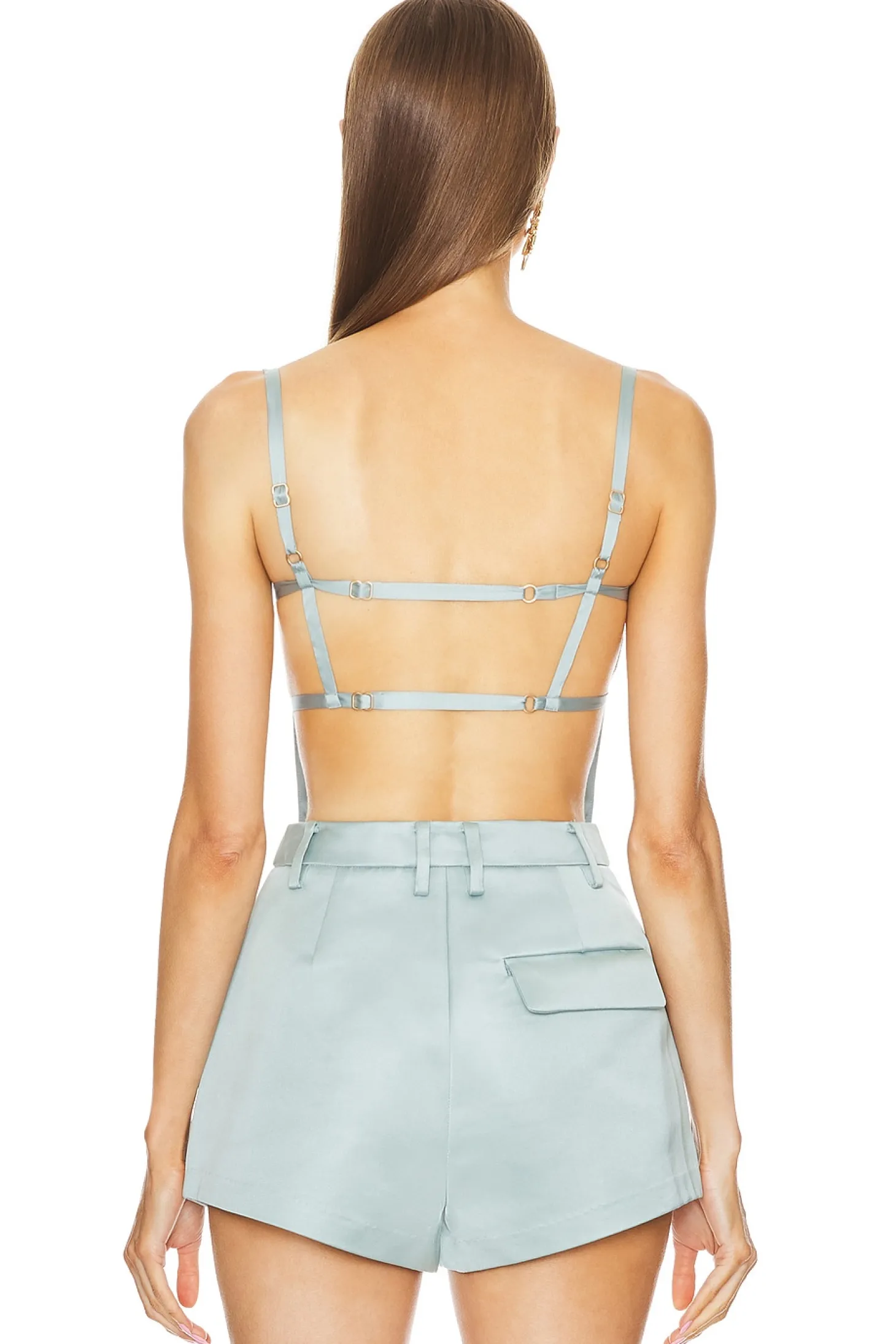 Self: 100% polyester Lining: 95% polyester 5% elastane.Made in China.Hand wash.Pull-on styling.Adjustable shoulder and back straps.Satin fabric.Item not sold as a set