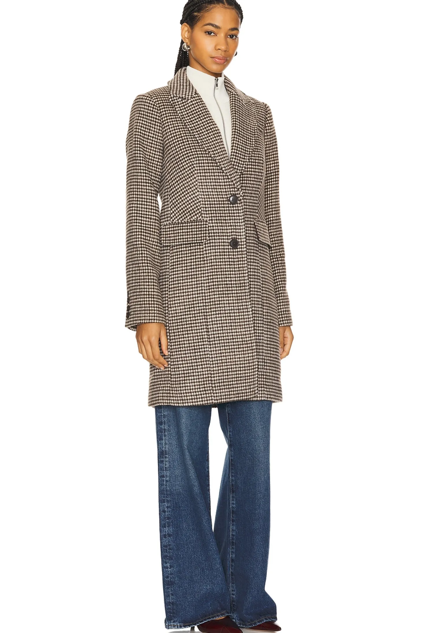Self: 68% polyester 11% acrylic 9% nylon 8% wool 4% other fibers Lining: 100% polyester.Made in China.Dry clean only