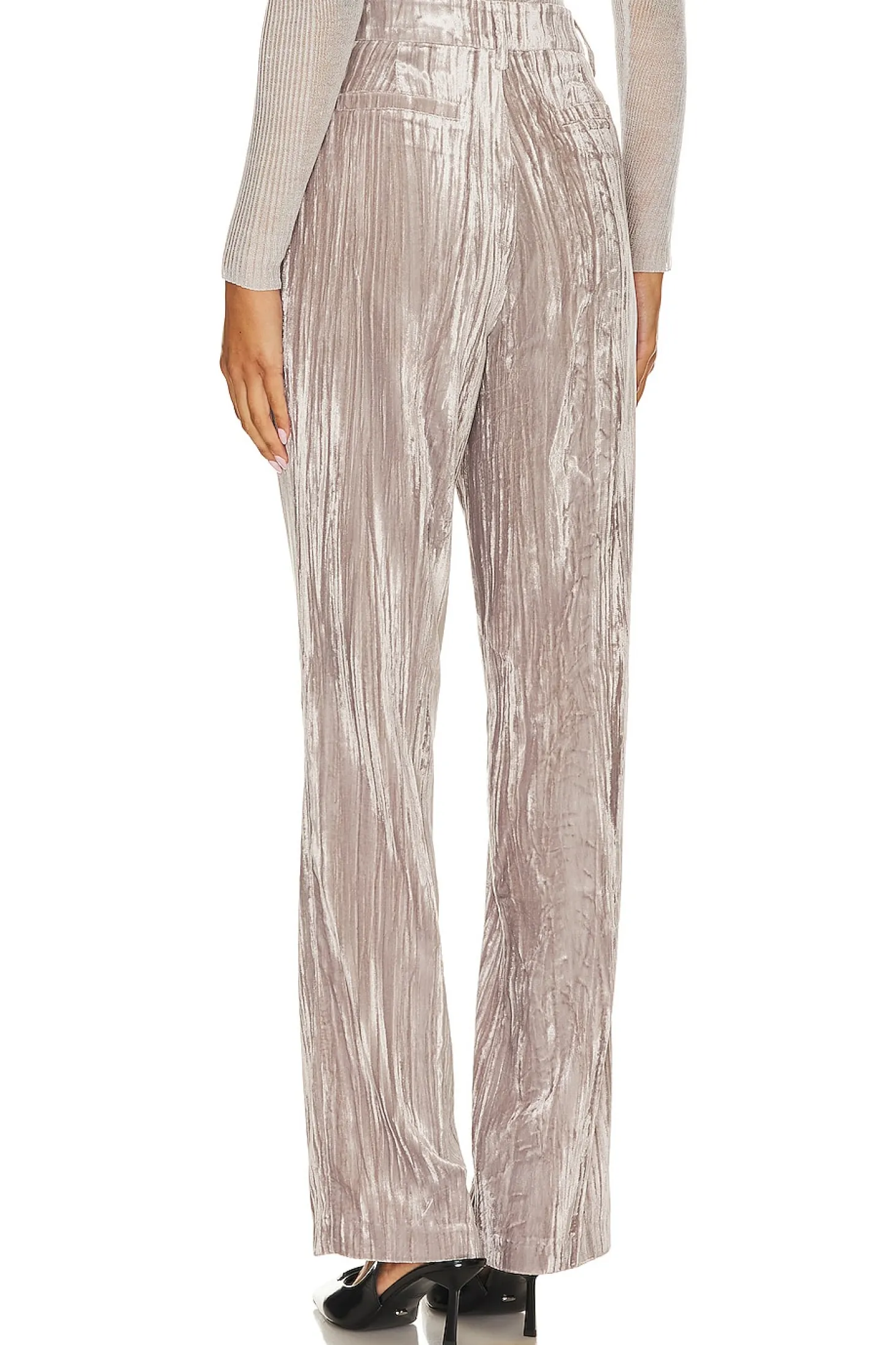 100% polyester.Made in China.Hand wash.Zip fly with button closure.Side seam pockets.Faux back welt pockets.Ribbed velvet fabric.17" at the knee breaks to 17.5" at the leg opening