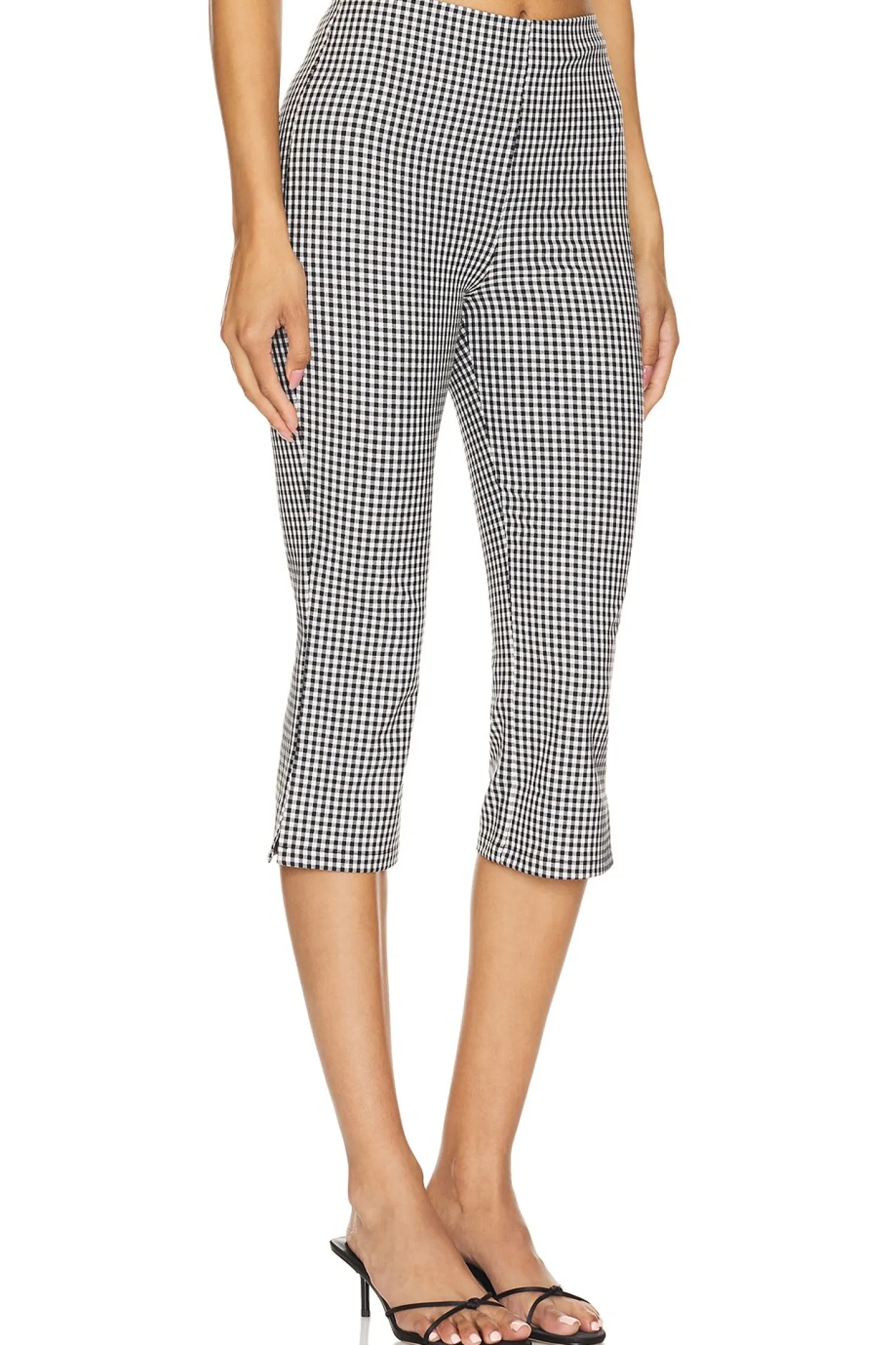 64% polyester 33% viscose 3% elastane.Made in China.Hand wash.Hidden back zipper closure.15" at the knee narrows to 12" at the leg opening