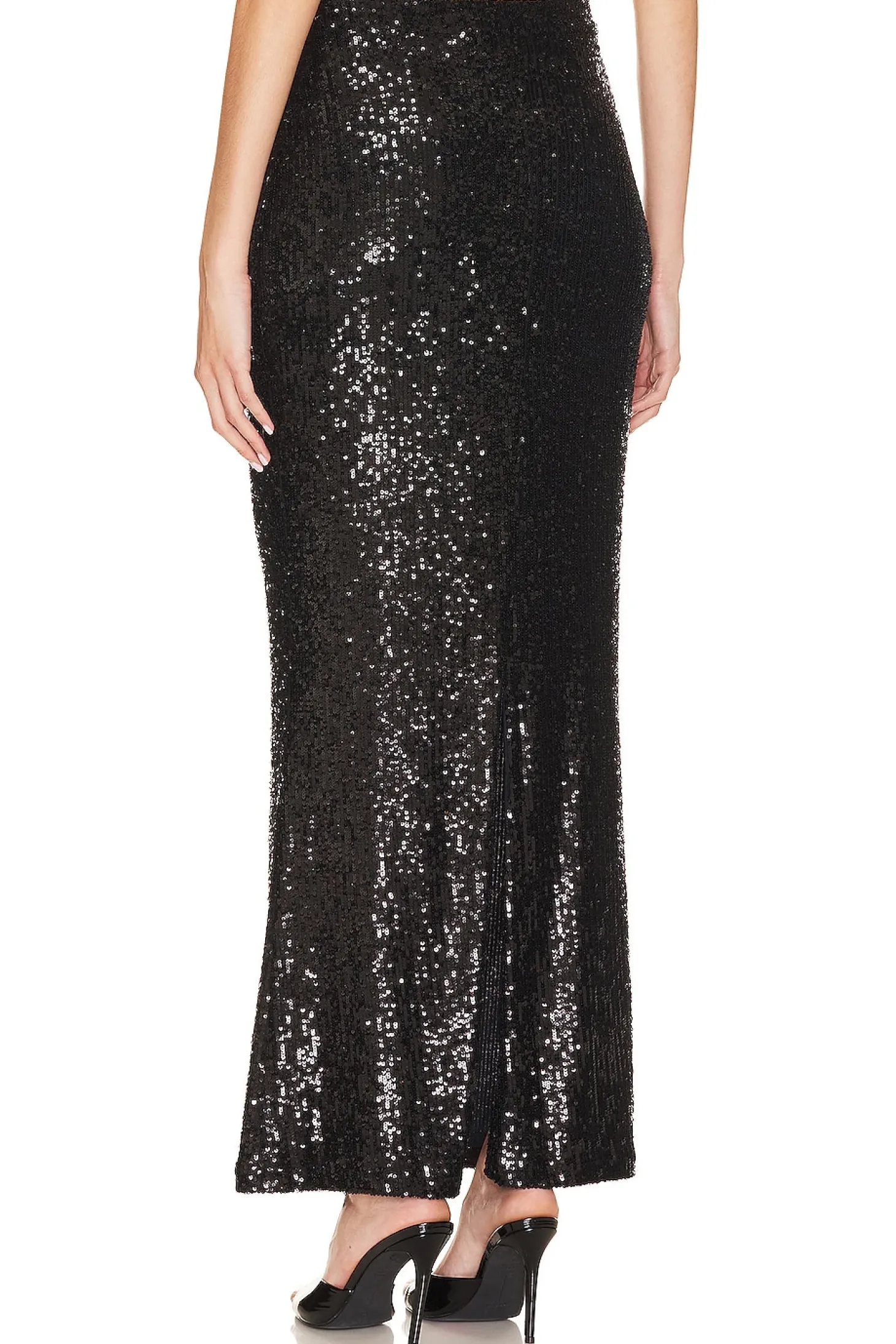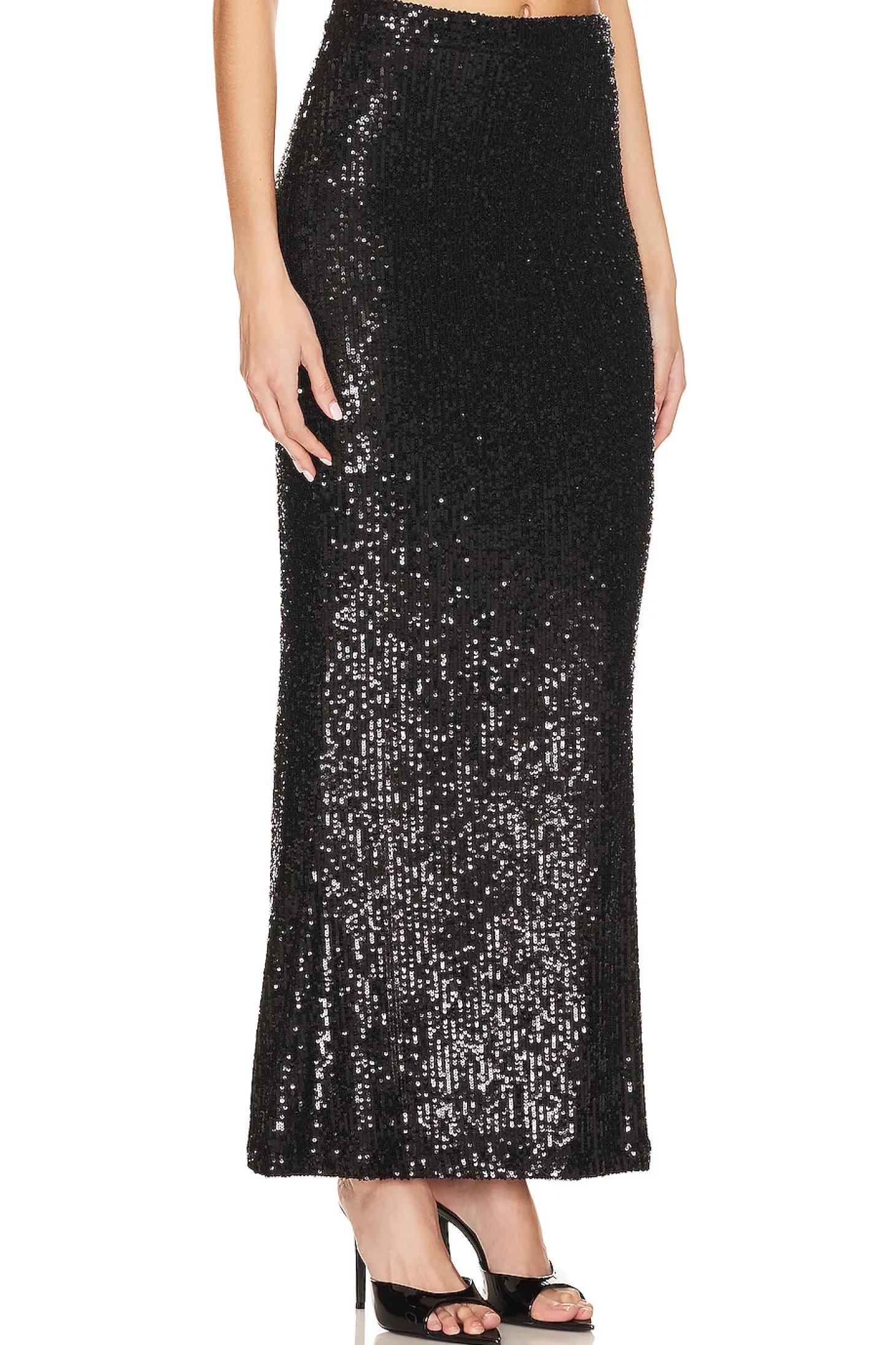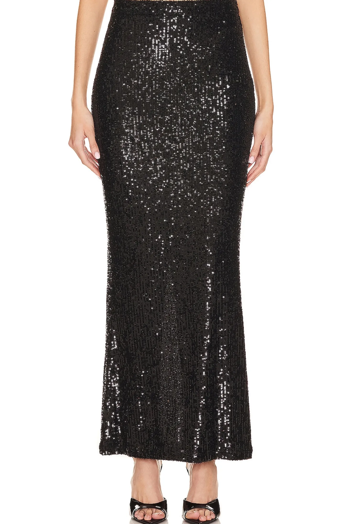 Self: 85% nylon 10% polyester 5% spandex Lining: 90% polyamide 10% elastane .Made in New York.Dry clean only.Fully lined.Pull-on styling.Allover sequin fabric.Item not sold as a set.Skirt measures approx 41" in length