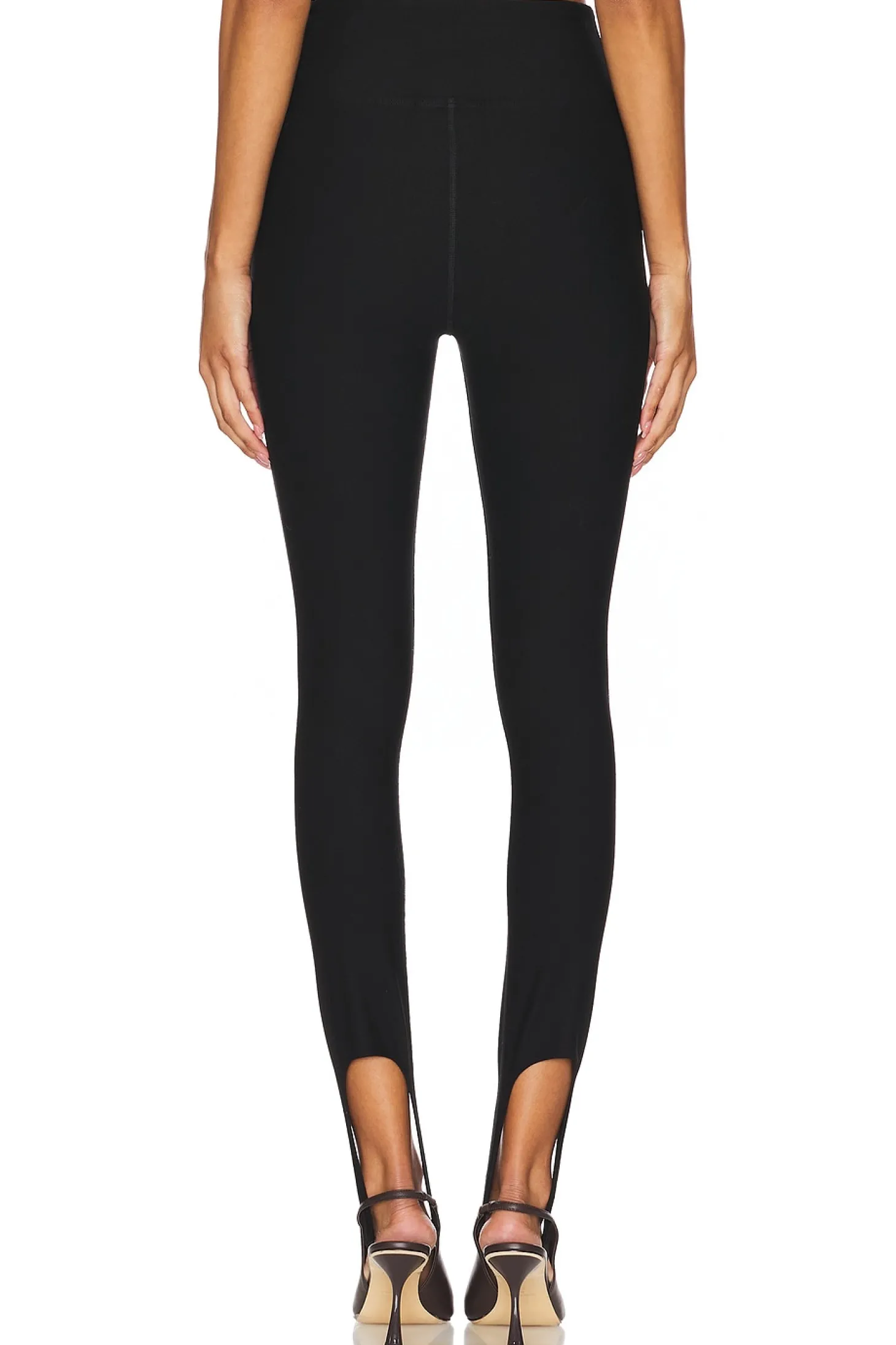 70% rayon 26% nylon 4% spandex.Made in China.Machine wash.Pull-on styling with stretch waistband.Tapered leg with stirrup hem.Stretch jersey fabric.12" at the knee narrows to 10" at the leg opening