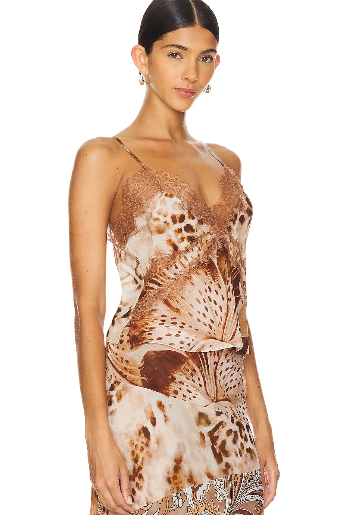 Self: 100% viscose Trim: 100% nylon.Made in China.Dry clean.Adjustable shoulder straps.Sheer chiffon fabric with lace trim.Item not sold as a set