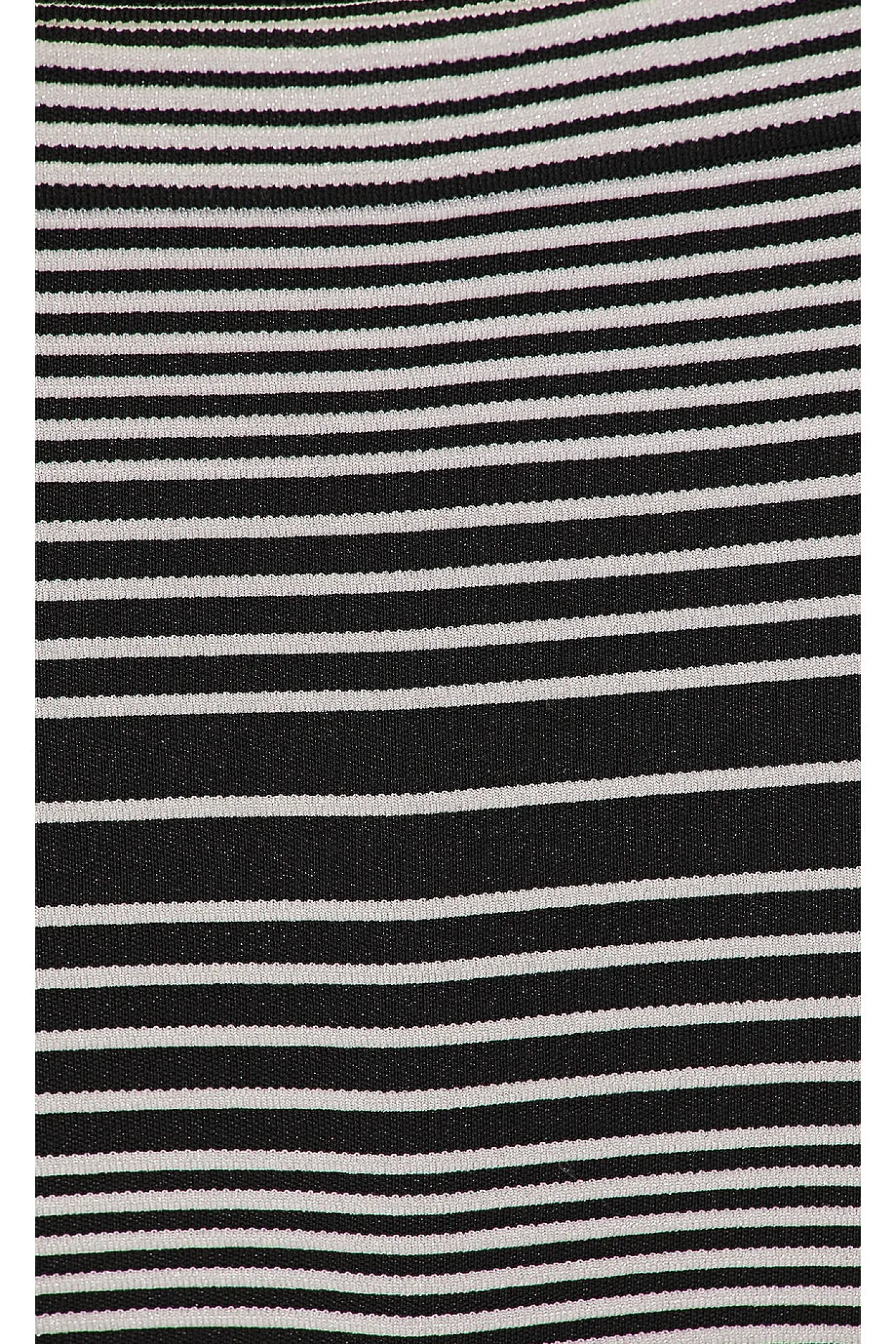 60% rayon 32% nylon 5% metallic 3% spandex.Made in China.Dry clean only.Unlined.Pull-on styling.Ribbed knit fabric with metallic threading.Item not sold as set