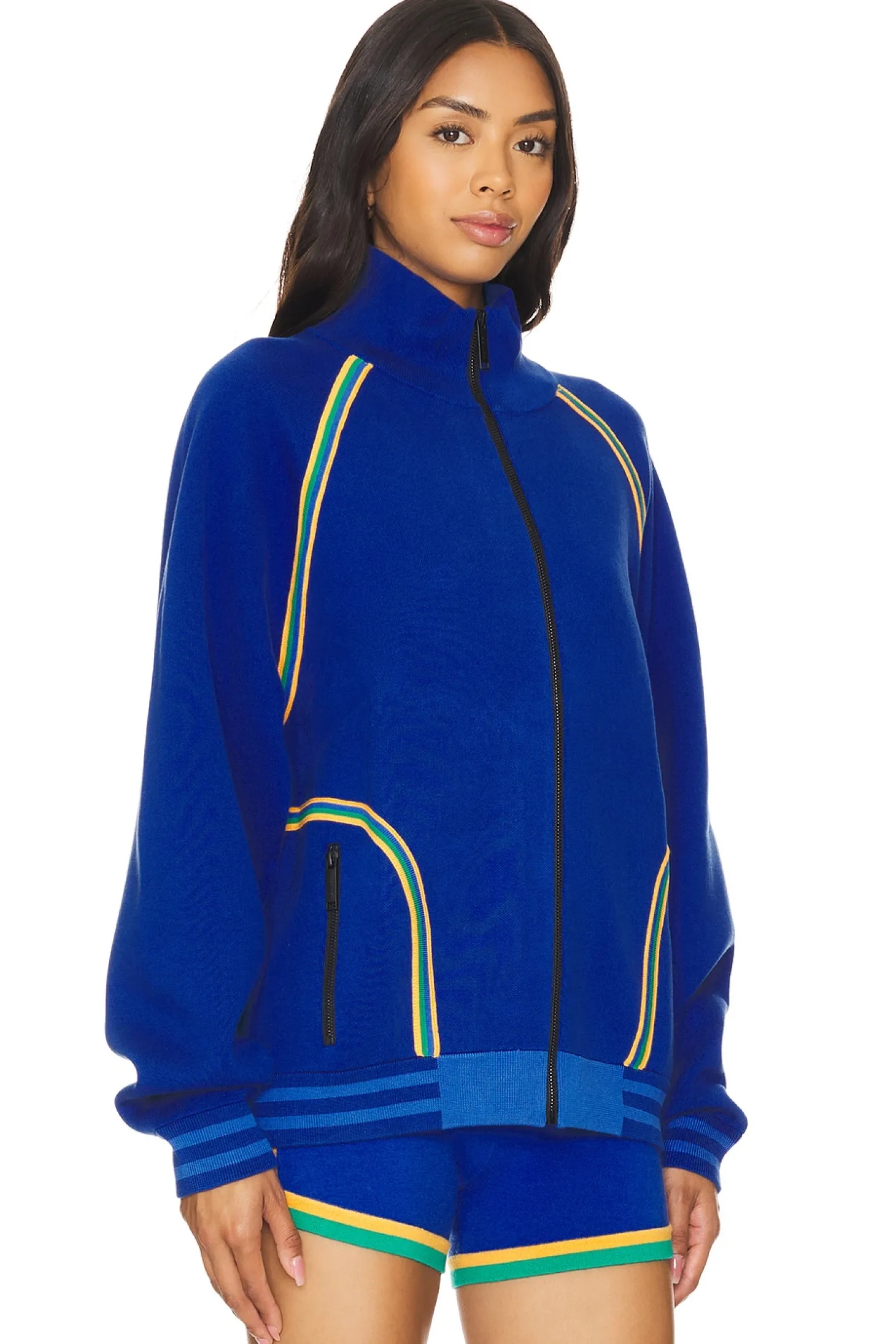 70% organic cotton 30% nylon.Made in China.Hand wash.Front zipper closure.Side pockets with zipper closure