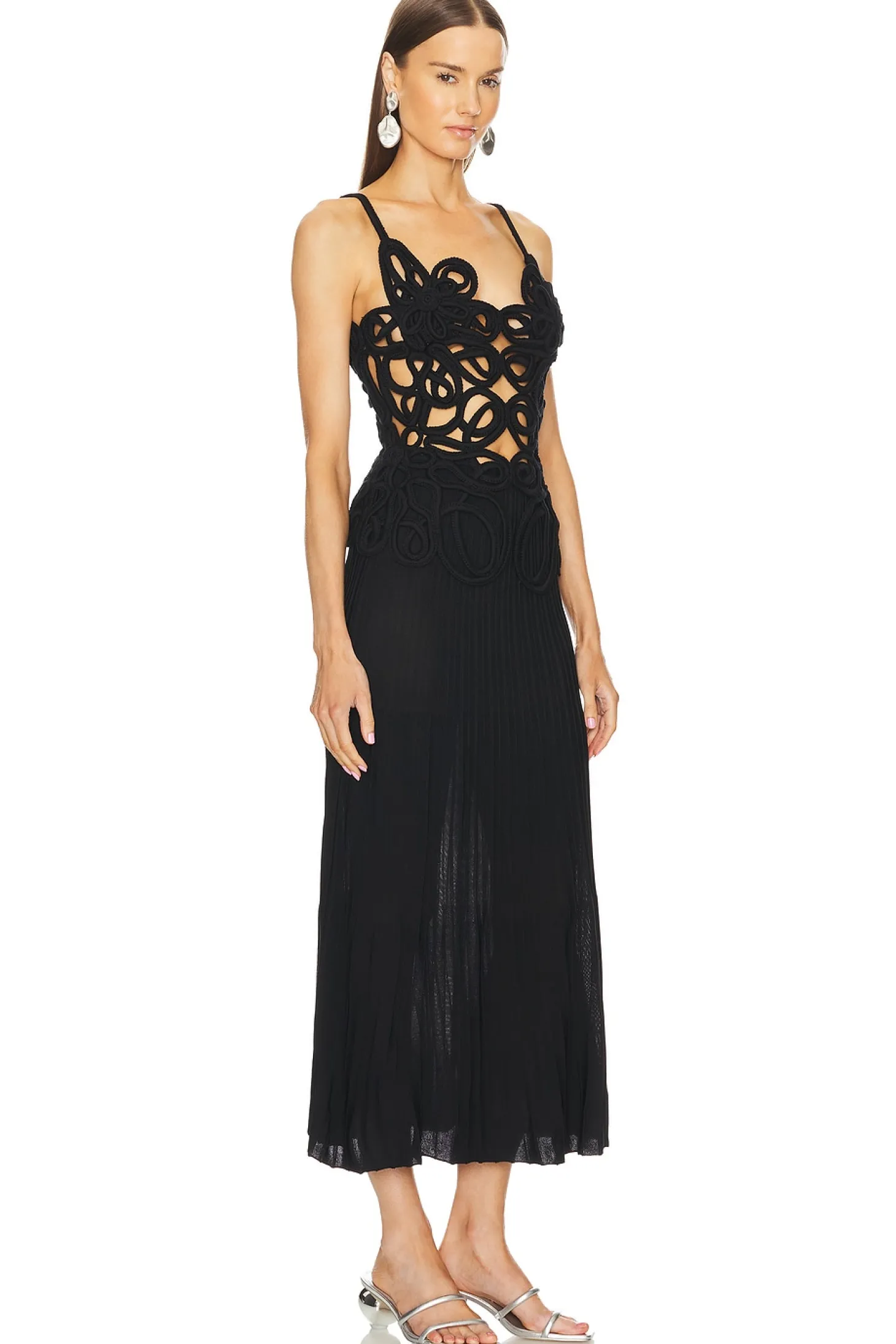 Self: 60% viscose 40% nylon Self 2: 100% cotton.Made in China.Hand wash.Unlined.Pull-on styling.Open plisse fabric.Garment is intentionally sheer, undergarments will show through. Please note undergarment not included