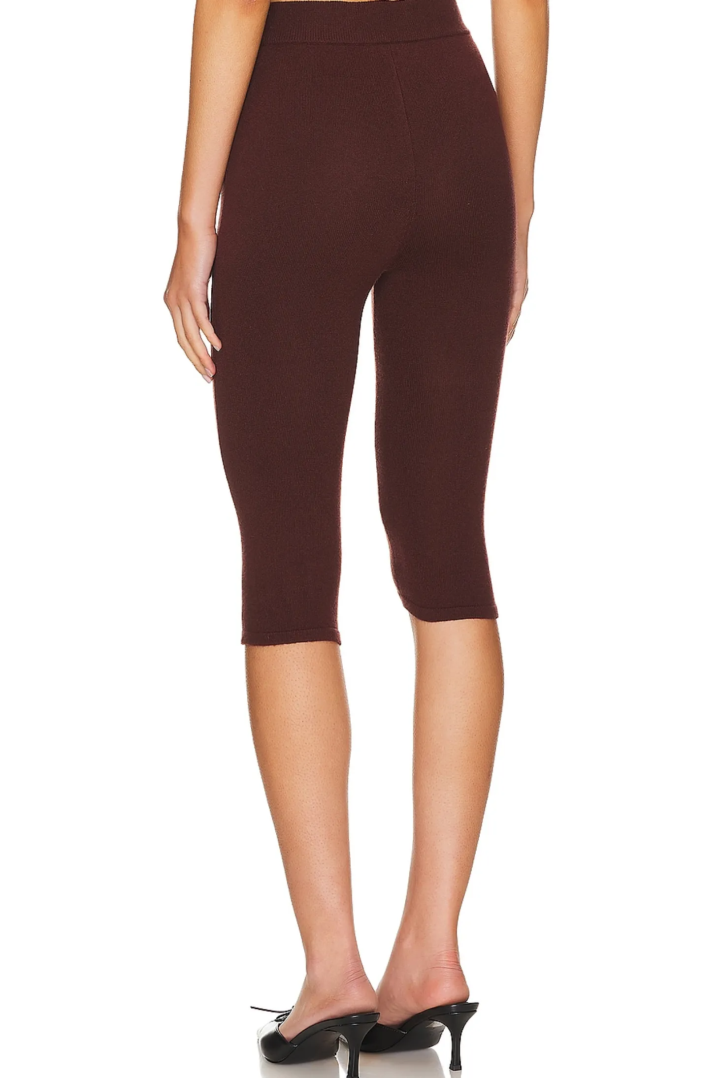 52% nylon 36% rayon 12% polyester.Made in China.Dry clean only.Pull-on styling with elastic waistband.Ponte knit fabric.Item not sold as a set.8" at the knee and 8" at the leg opening
