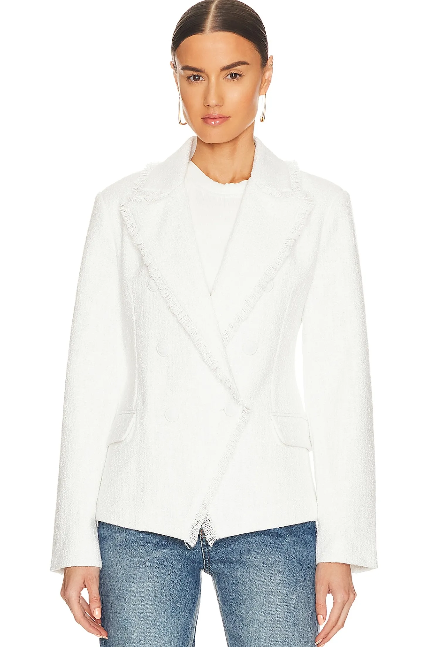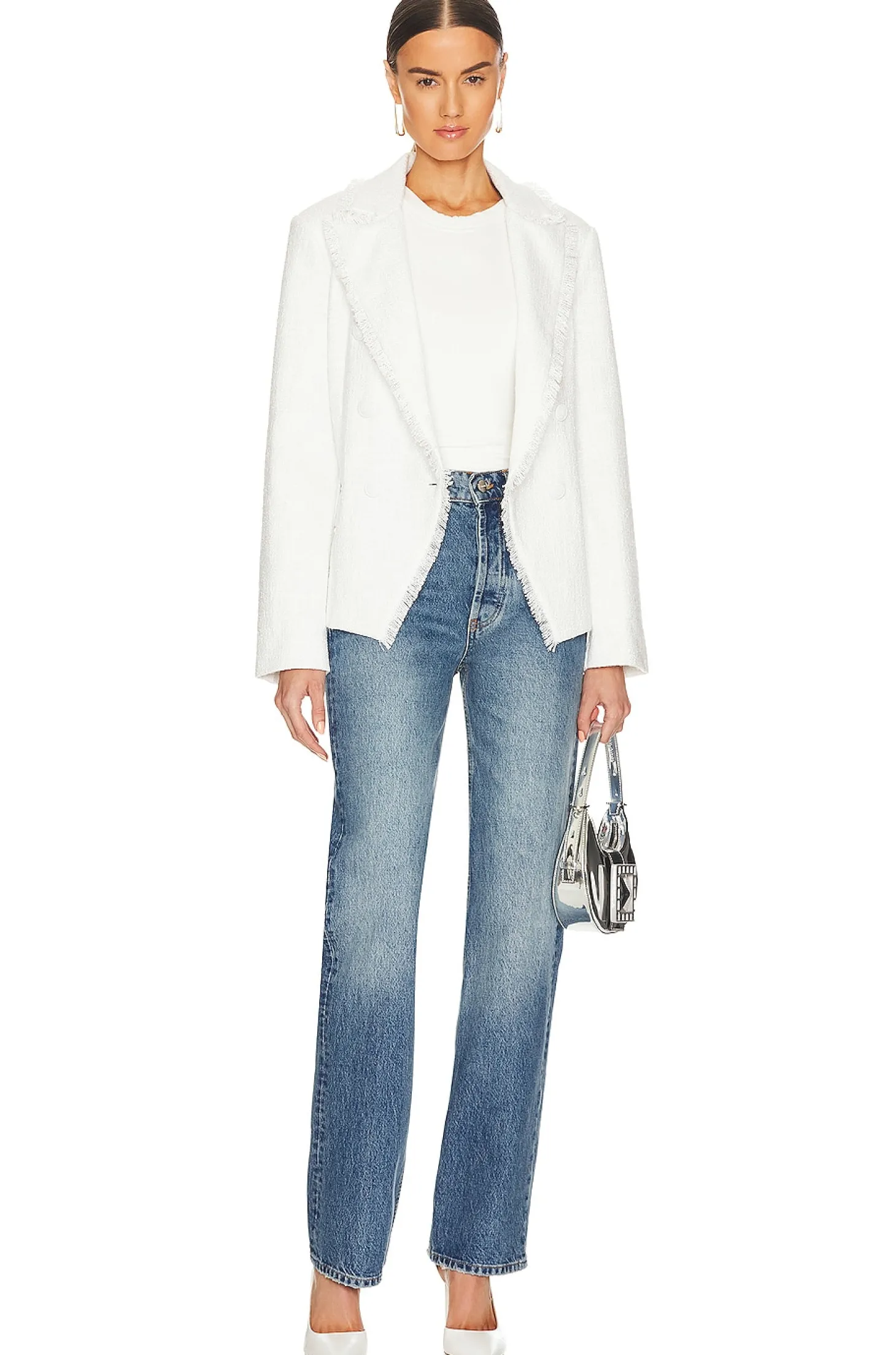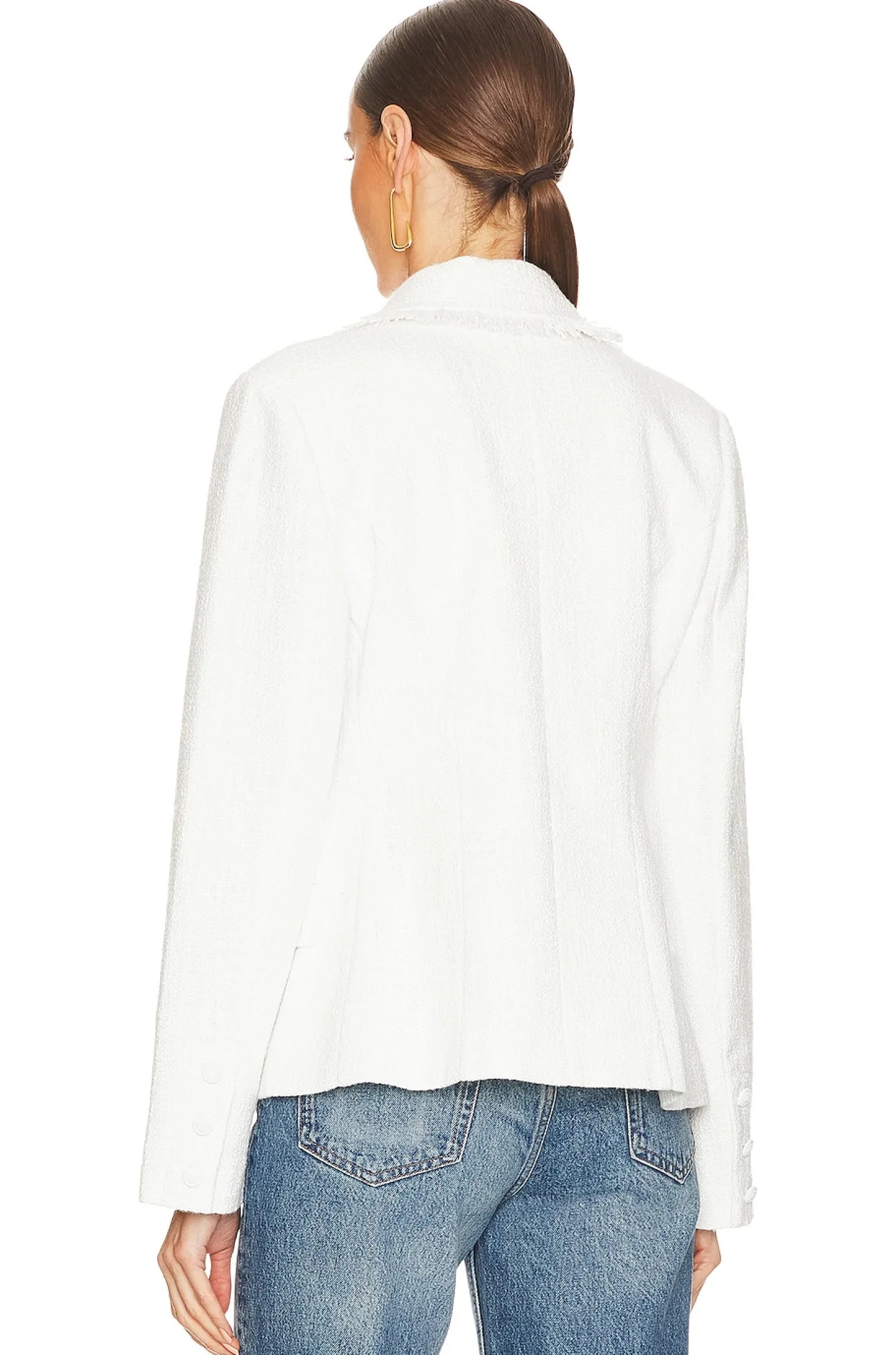 Cotton blend.Imported.Dry clean recommended.Front button closure.Front flap pockets.Button cuffs.Frayed trim