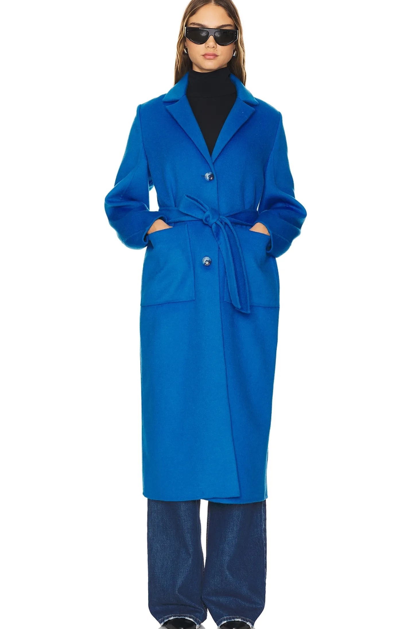 Melton textile.Imported.Dry clean recommended.Front button closure.Front slip pockets.Attached waist tie.Midweight fabric