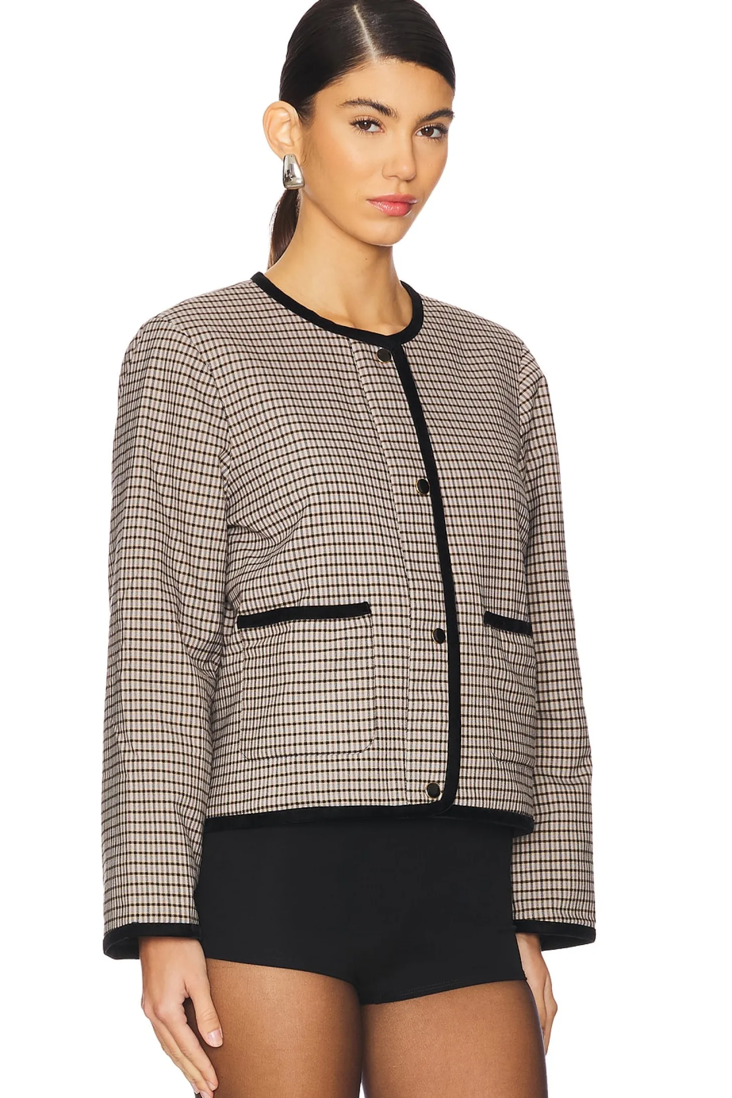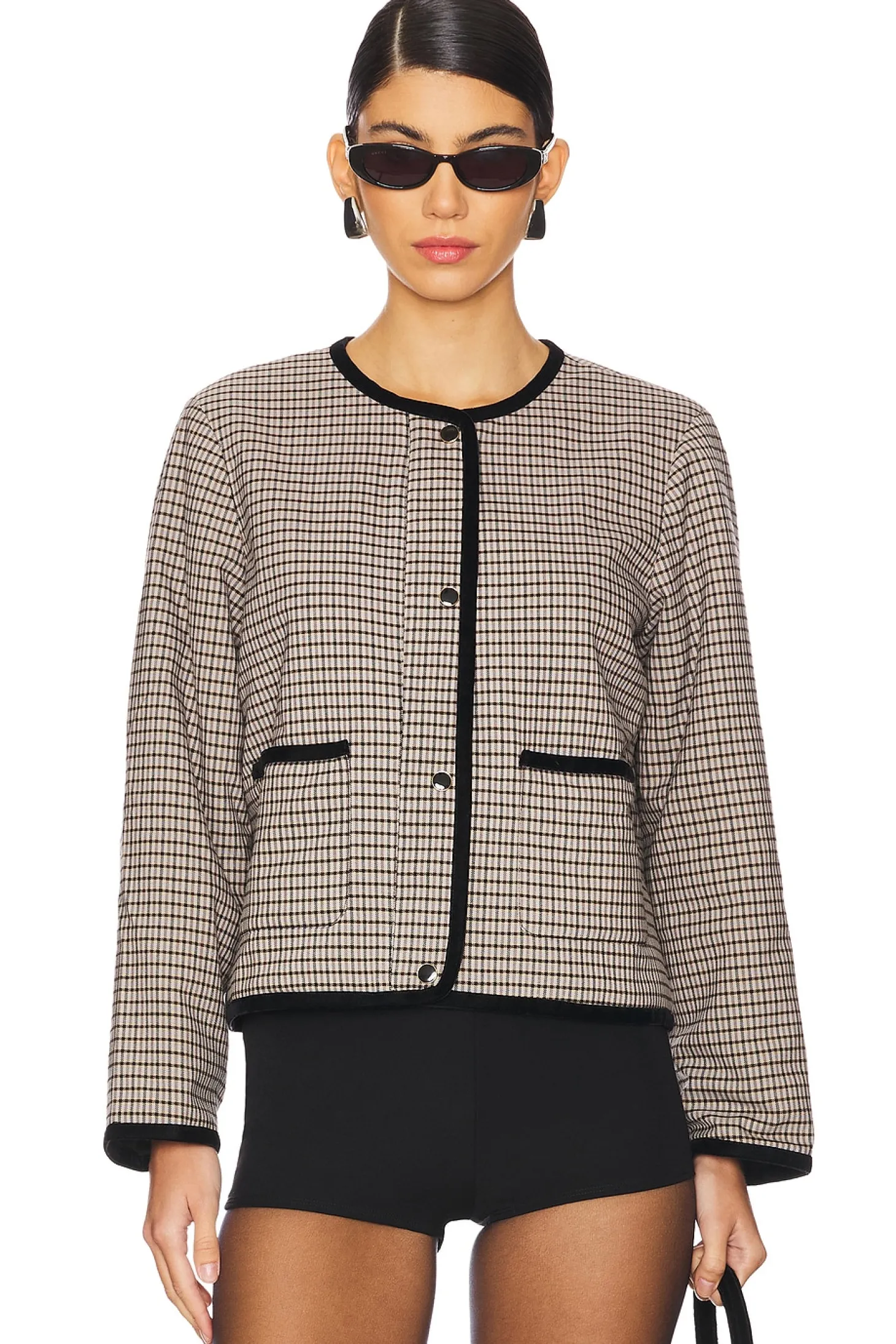 Self: 65% polyester 33% rayon 2% spandex Lining: 100% polyester.Made in China.Dry clean only.Hidden front zip with snap closure.Front slip pockets.Midweight twill fabric with crushed velvet trim