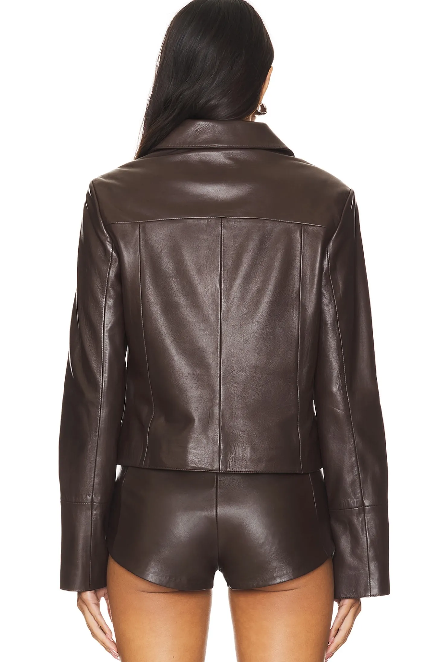 Self: 100% lamb leather Lining: 97% polyester 3% spandex.Made in India.Professional leather clean only.Front zipper closure.Side seam zipper pockets.Lightweight smooth leather fabric.Item not sold as a set