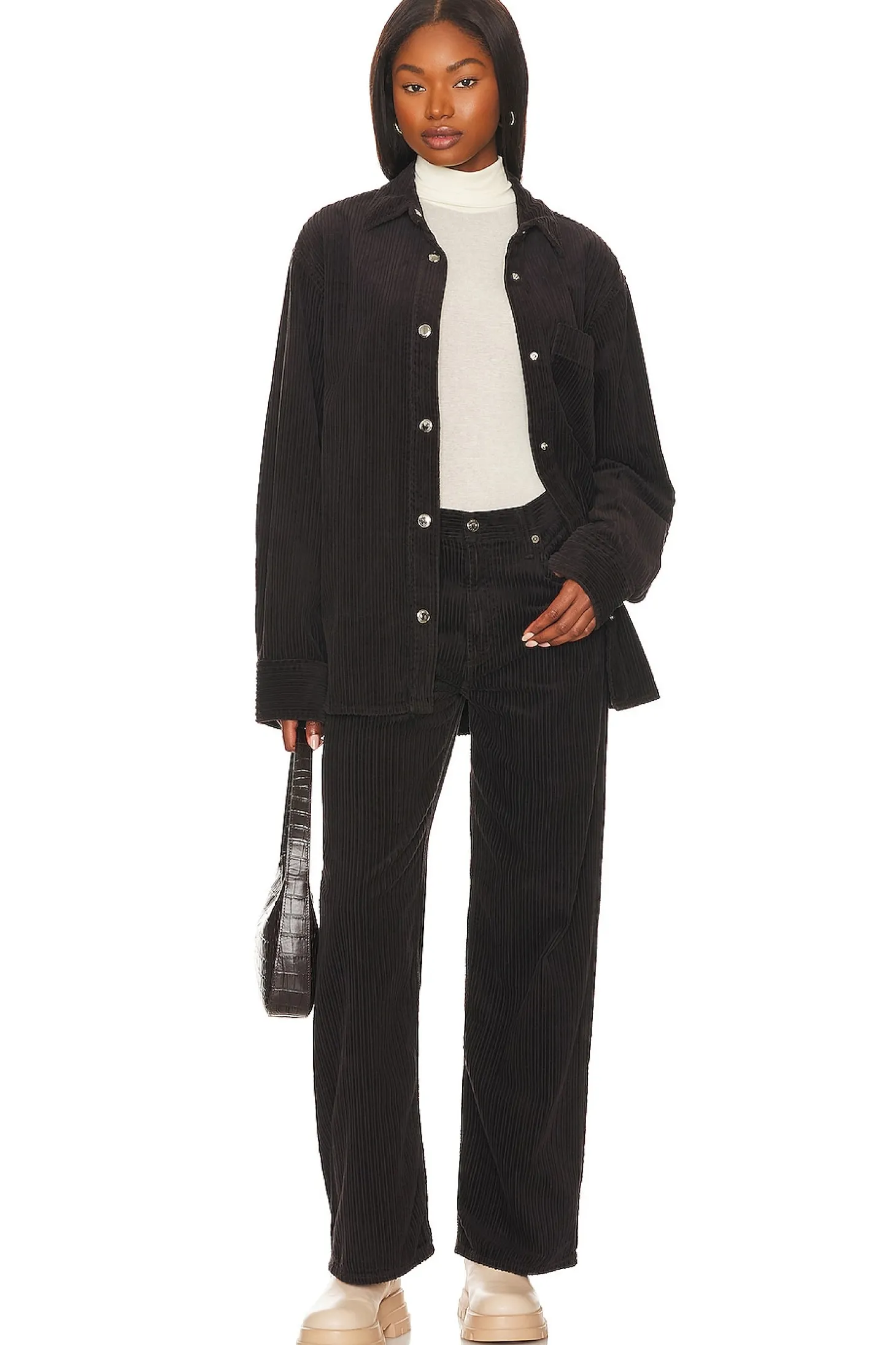 100% cotton.Made in USA.Machine wash.Front button closure.Breast slip pocket.Button cuffs.Lightweight ribbed corduroy fabric.Item not sold as a set