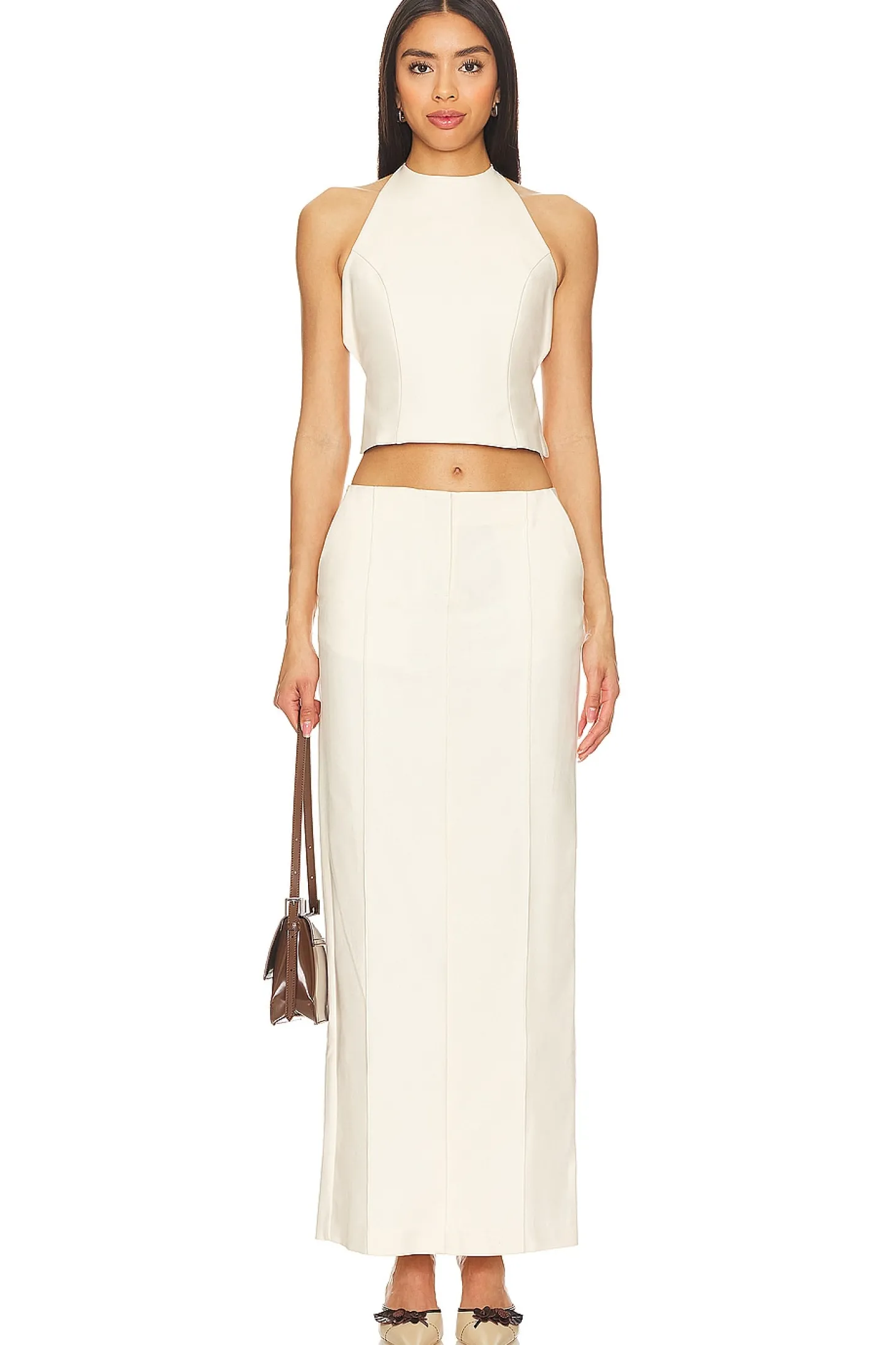 Self: 69% cotton 28% nylon 3% elastane Lining: 97% polyester 3% elastane.Made in China.Hand wash.Unlined.Zip fly with button closure.4-pocket design.Thick twill fabric with back vent Item not sold as a set.Skirt measures approx 38.5" in length