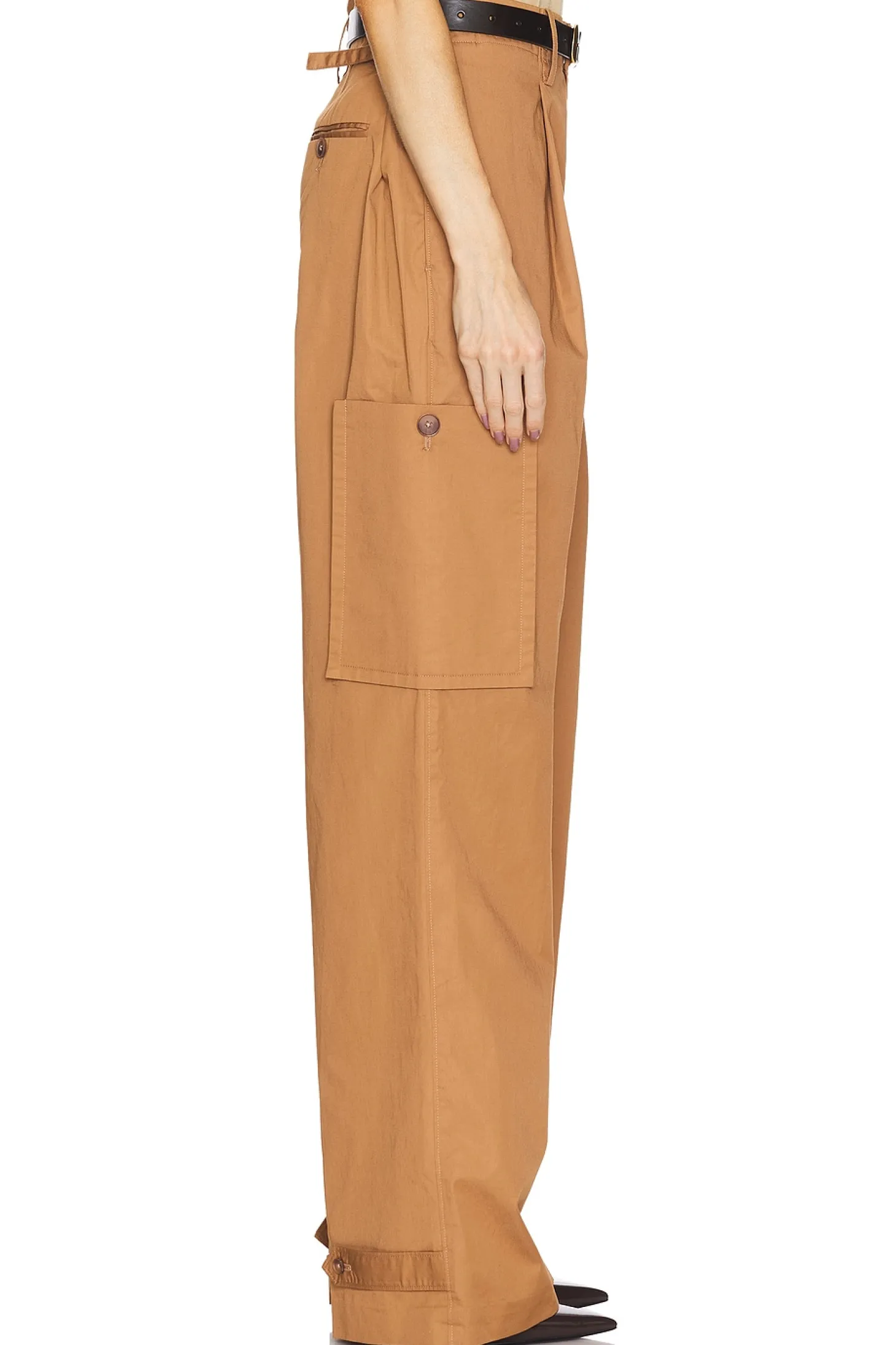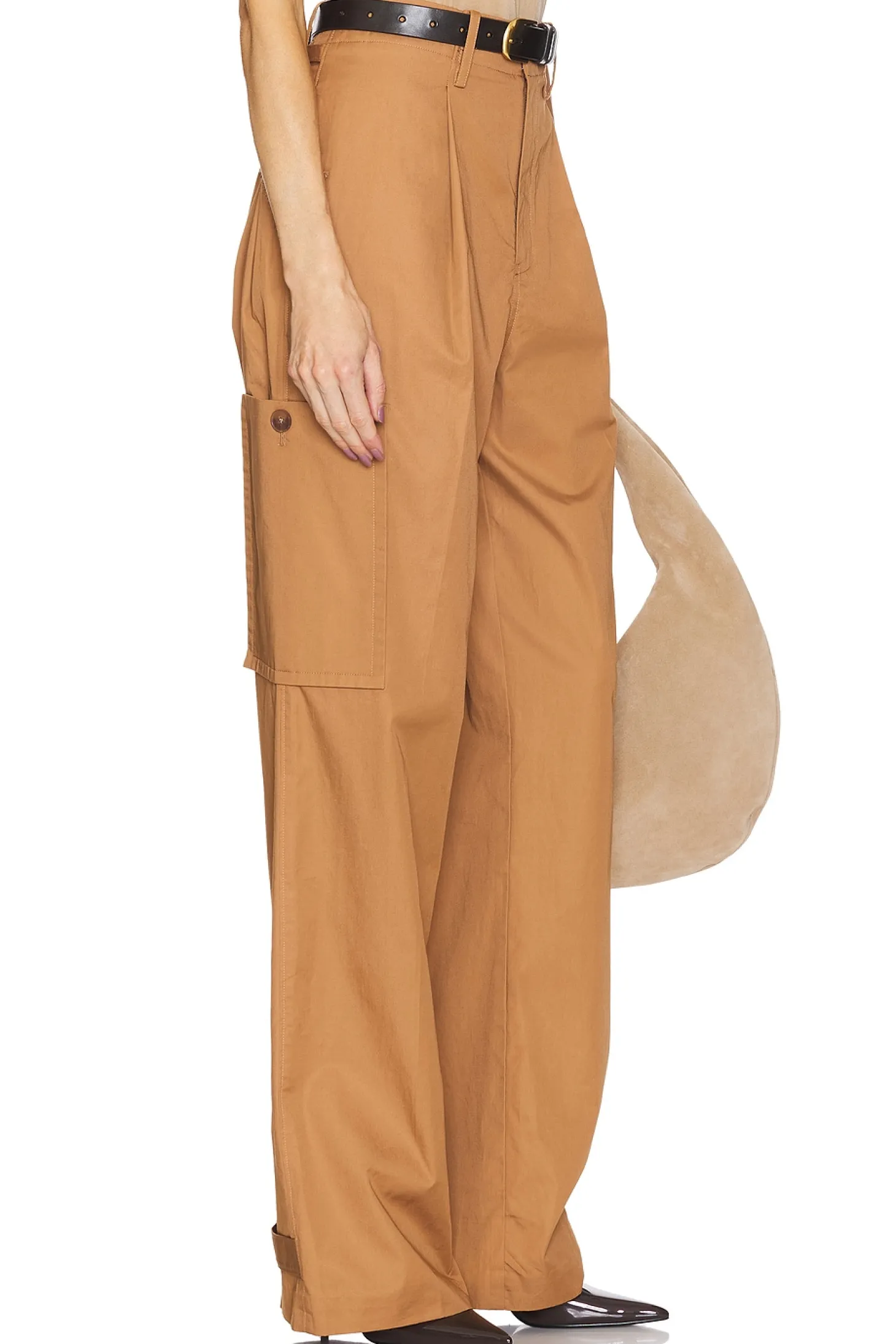 100% cotton.Made in China.Hand wash.Zip fly with hook and bar closure.6-pocket styling with button closures.Cargo pocket design.Adjustable belt accent and ankles Poplin fabric.23" at the knee narrows to 22" at the leg opening