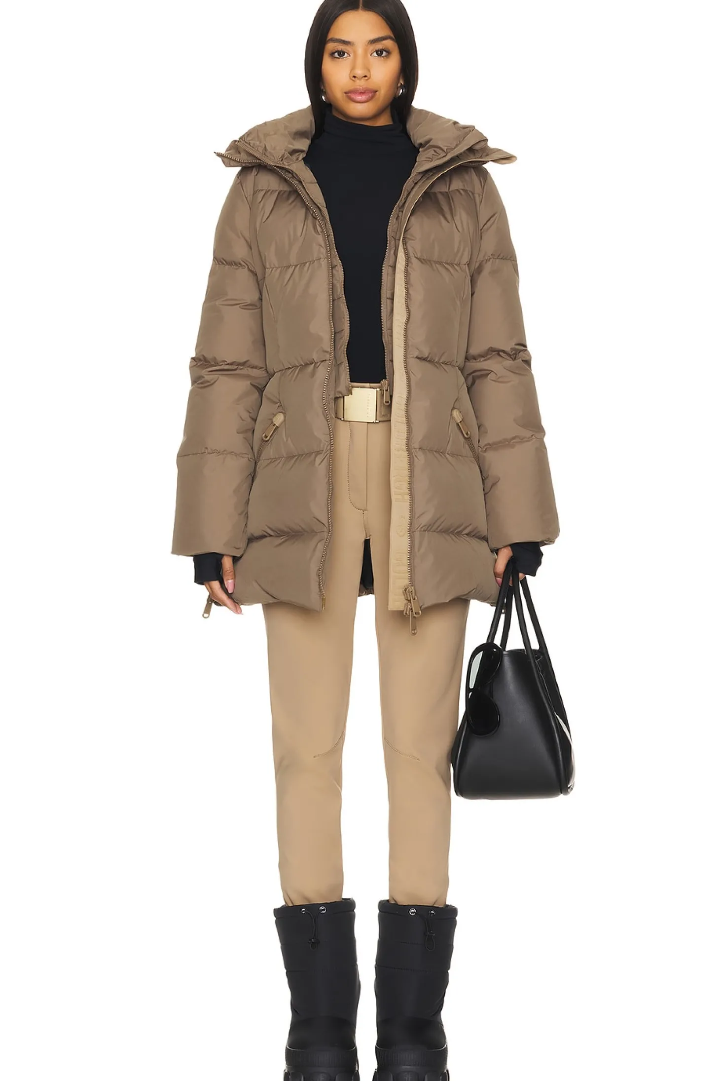 74% polyamide 26% elastane.Made in China.Machine wash recommended.Zip fly with hook and bar closure.Front zipper pockets.Stirrup cuffs.Thick fabric.16" at the knee narrows to 10" at the leg opening