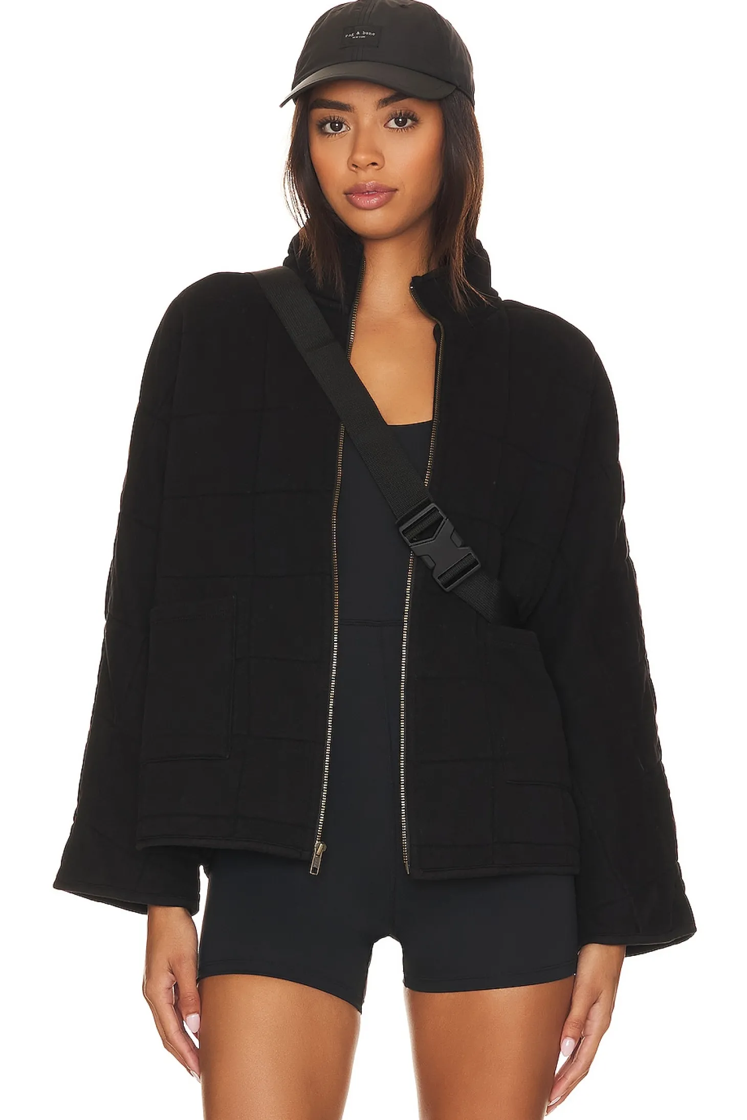 Self 1 & Lining: 100% cotton Self 2: 100% polyester.Made in China.Hand wash.Front zipper closure.Front slip pockets.Quilted design