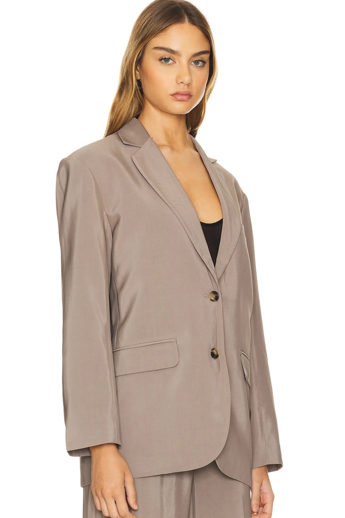 Self: 100% viscose Lining: 57% polyester 43% viscose.Made in China.Dry clean only.Front button closure.Front pockets and single breast pocket Interior breast pockets.Attached shoulder pads.Item not sold as set