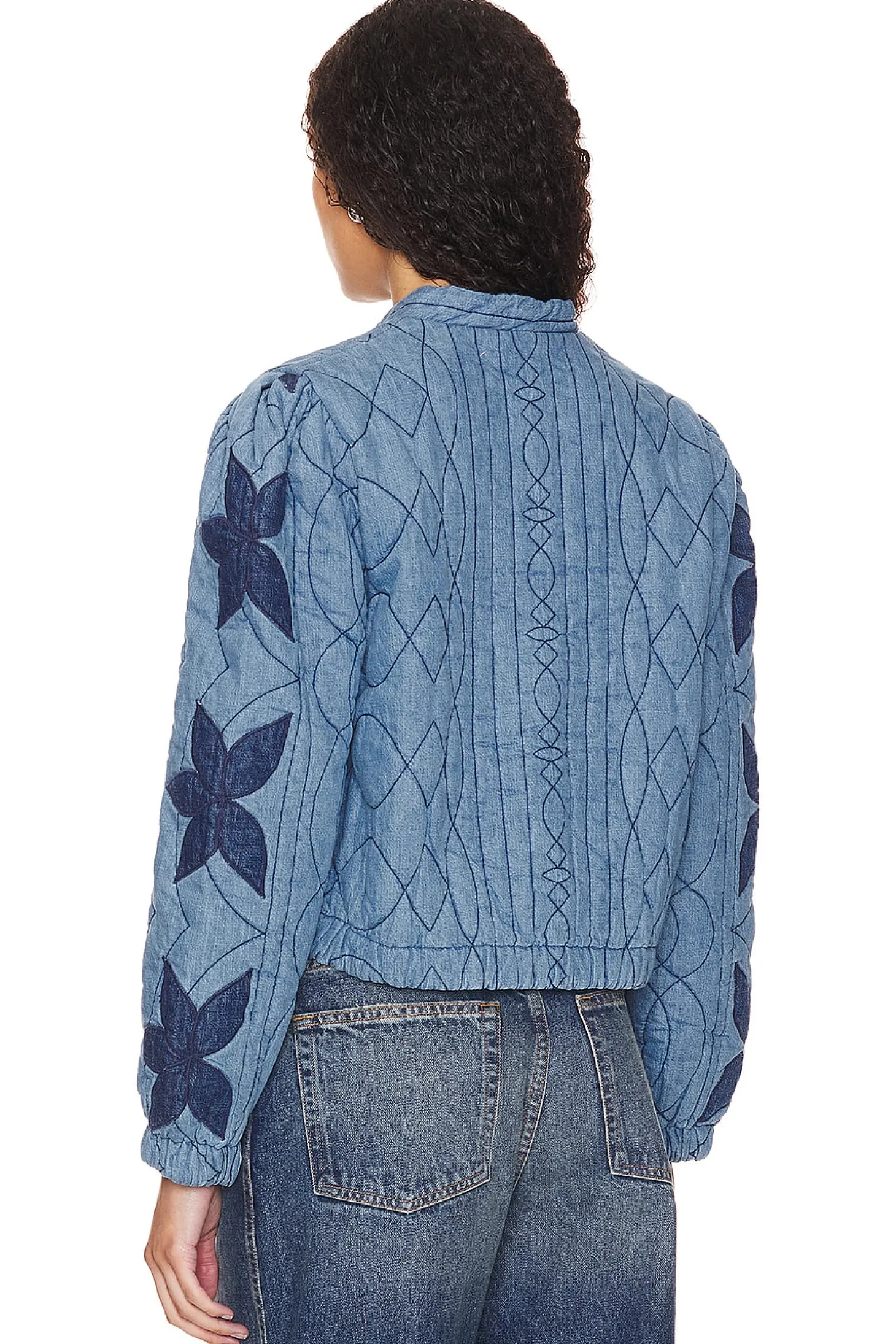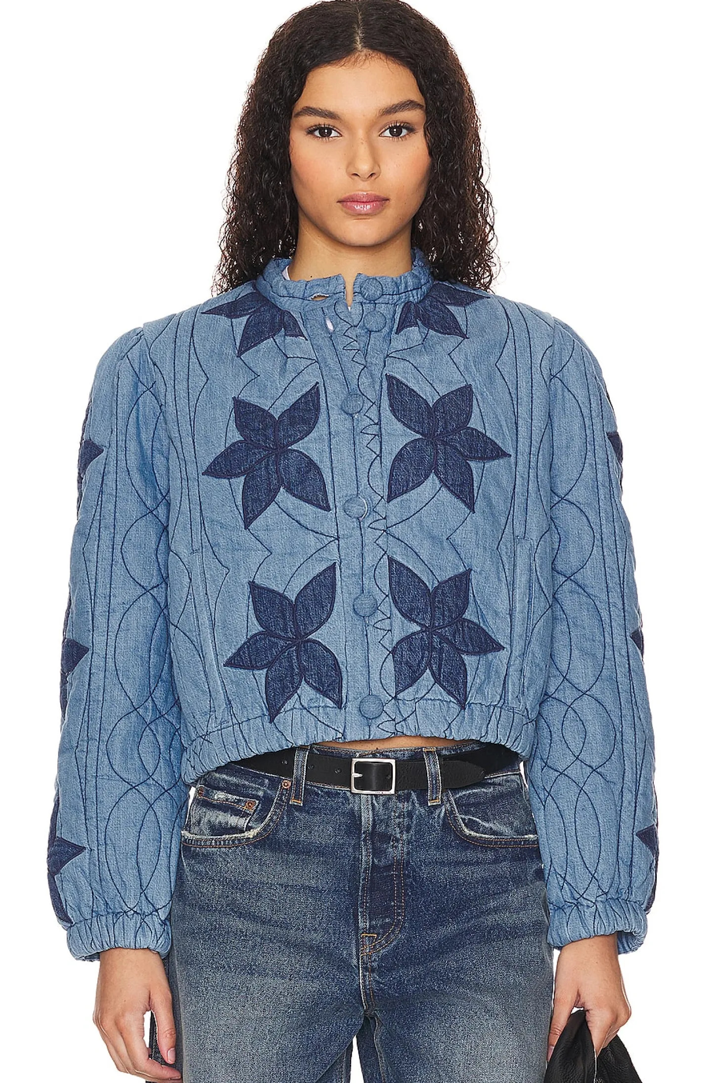 Keep warm with the Free People Quinn Quilted Jacket in the enchanting Indigo Combo. Embrace the whimsical charm of June gloom with this uniquely designed quilted jacket featuring delicate floral details. Whether you're strolling through misty mornings or adding a layer of cozy style to your evening look, the Quinn Quilted Jacket is the perfect choice..Self & Lining: 100% cotton Contrast Fabric & Fill: 100% polyester.Made in India.Dry clean only.Front button closure.Elastic cuffs.Quilted chambray fabric