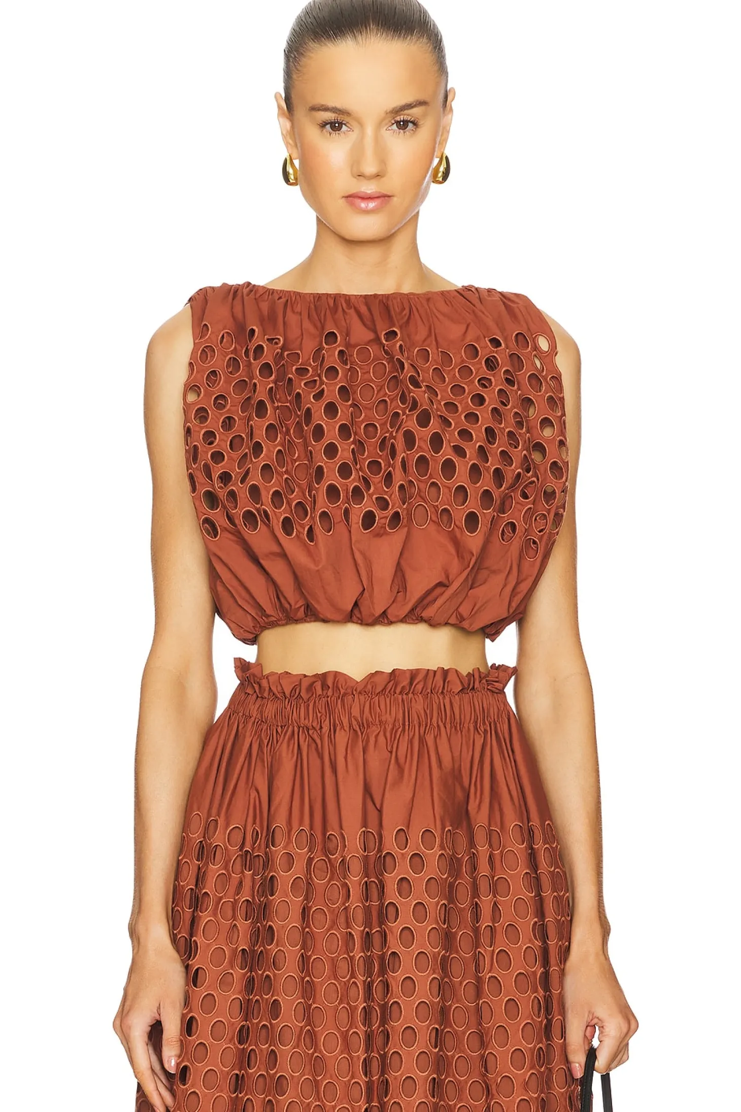 100% cotton.Made in China.Dry clean.Fully lined.Pull on styling with back button closure.Item not sold as a set