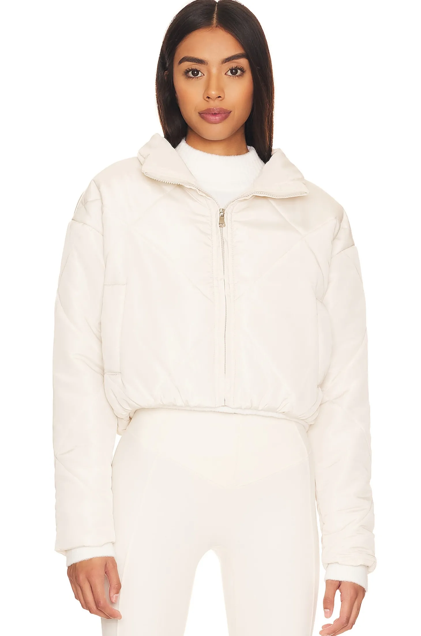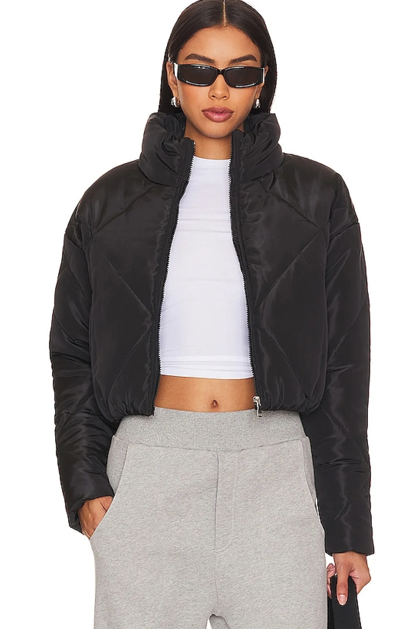 100% polyester.Made in China.Hand wash.Front zipper closure.Side slant pockets.Puff nylon fabric