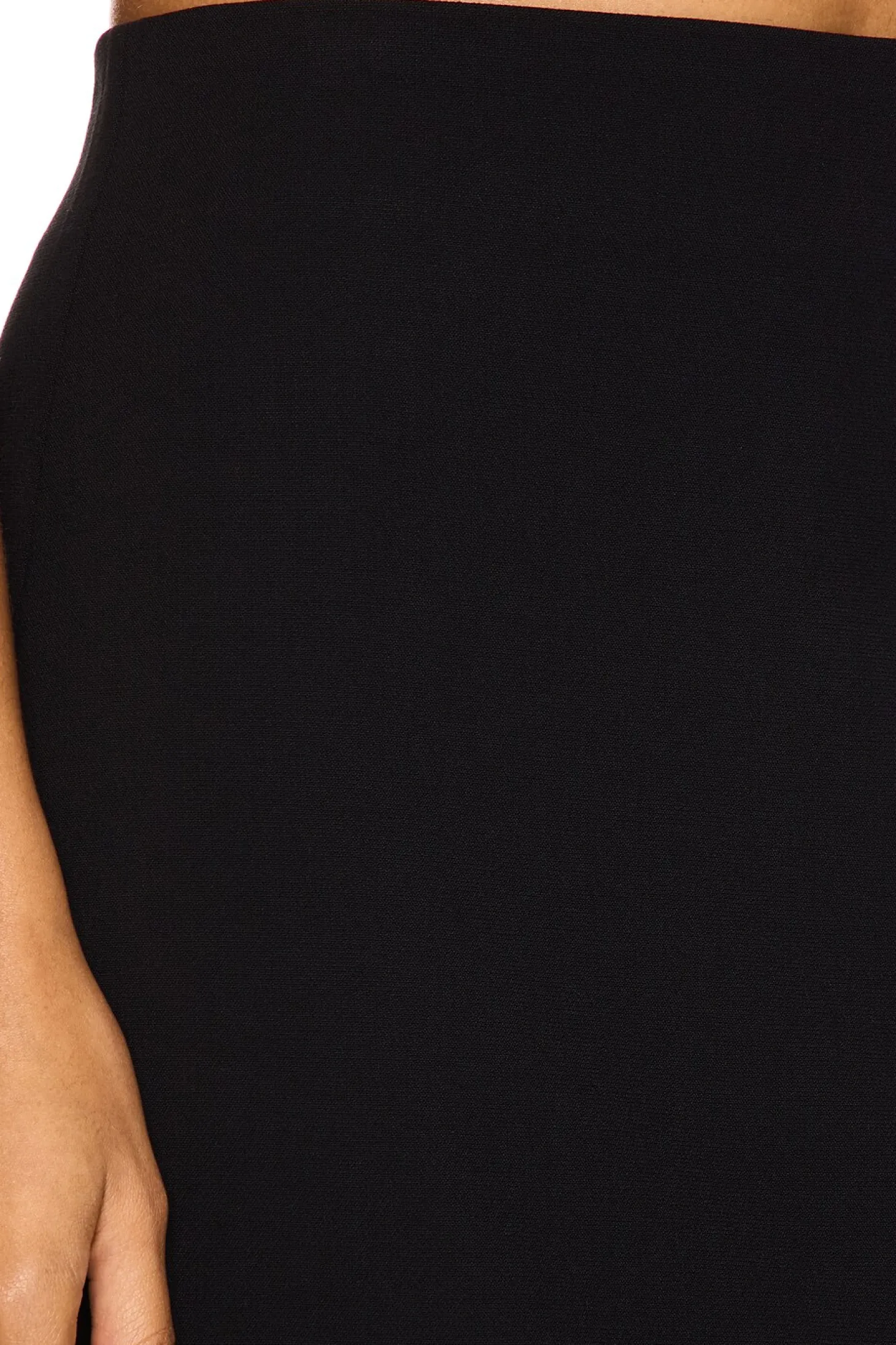 Self: 65% polyester 31% rayon 4% spandex Lining: 100% polyester.Made in China.Machine wash.Fully lined.Back adjustable double zip closure.Heavyweight ponte fabric.Item not sold as a set.Skirt measures approx 36" in length