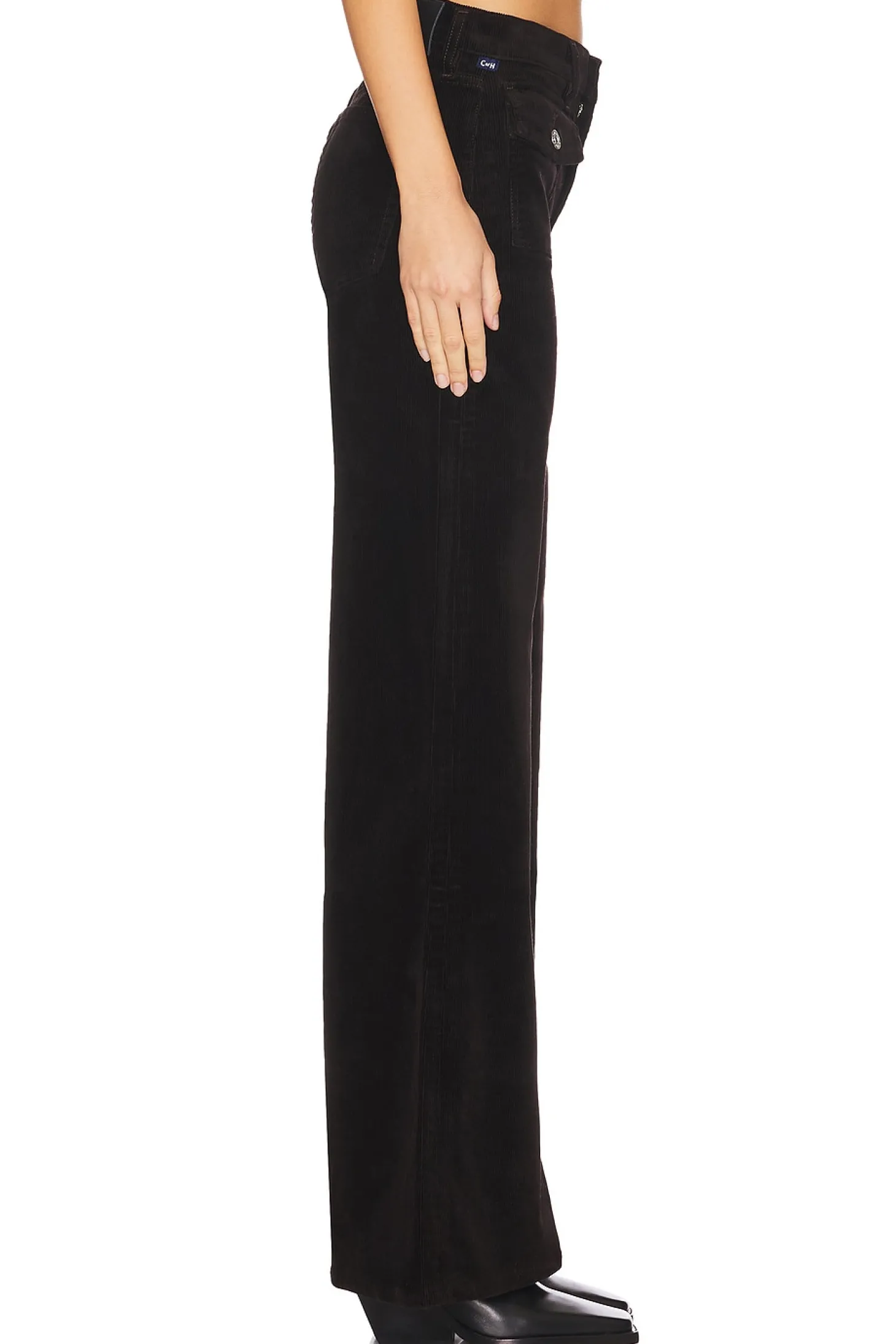 98% cotton 2% elastane.Made in Turkey.Machine wash.Zip fly with button closure.Front flap pockets with button closure.Back slip pockets.Corduroy fabric.22" at the knee breaks to 24" at the leg opening