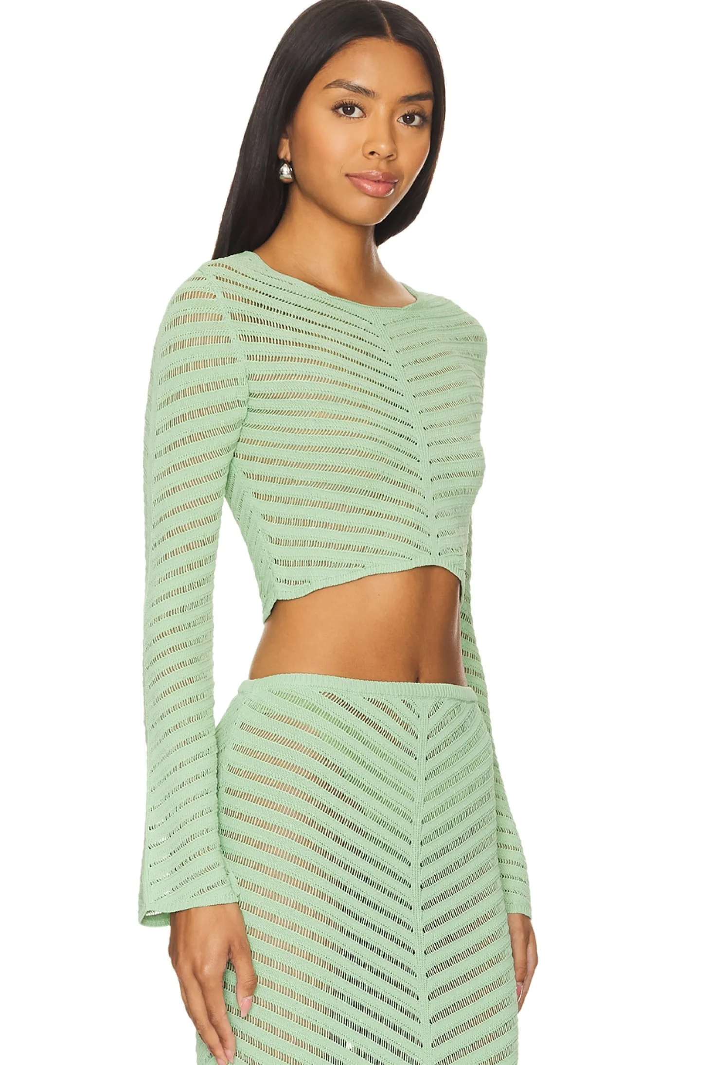 63% viscose 37% nylon.Made in China.Dry clean only.Pull-on styling.Item not sold as set.Garment is intentionally sheer, undergarments will show through. Please note undergarment not included.Crochet knit fabric